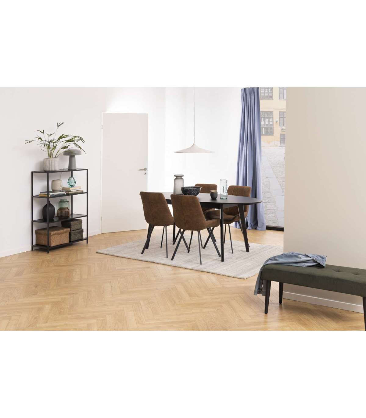 Muutke söögitooliga ruumi atmosfääri. Istmel on kõrgendatud servad. Tool on kaetud pehme kangaga, mis on praktiline ja kulumiskindel. Kaunistatud ruudukujuliste õmblustega. Jalad: matt must pulbervärvitud metall. Mõõdud 54x58,5xH88cm. HOOLDUS: Hooldus piirdub tolmuimejaga ja plekieemaldamisega. Plekkide eemaldamisel tuleb olla ettevaatlik. Katsetage plekieemaldajaid esmalt vähem nähtaval alal ja tegutsege vastavalt tulemusele. Ärge kunagi kasutage lahusteid. Ärge asetage mööblit otsese päikesevalguse kätte. Alus: Kasutage igapäevaseks puhastamiseks õrnas seebivees tugevasti väänatud lappi. Rooste vältimiseks pühkige lapiga kuivaks. Ärge hõõruge pinda kõvade esemetega.