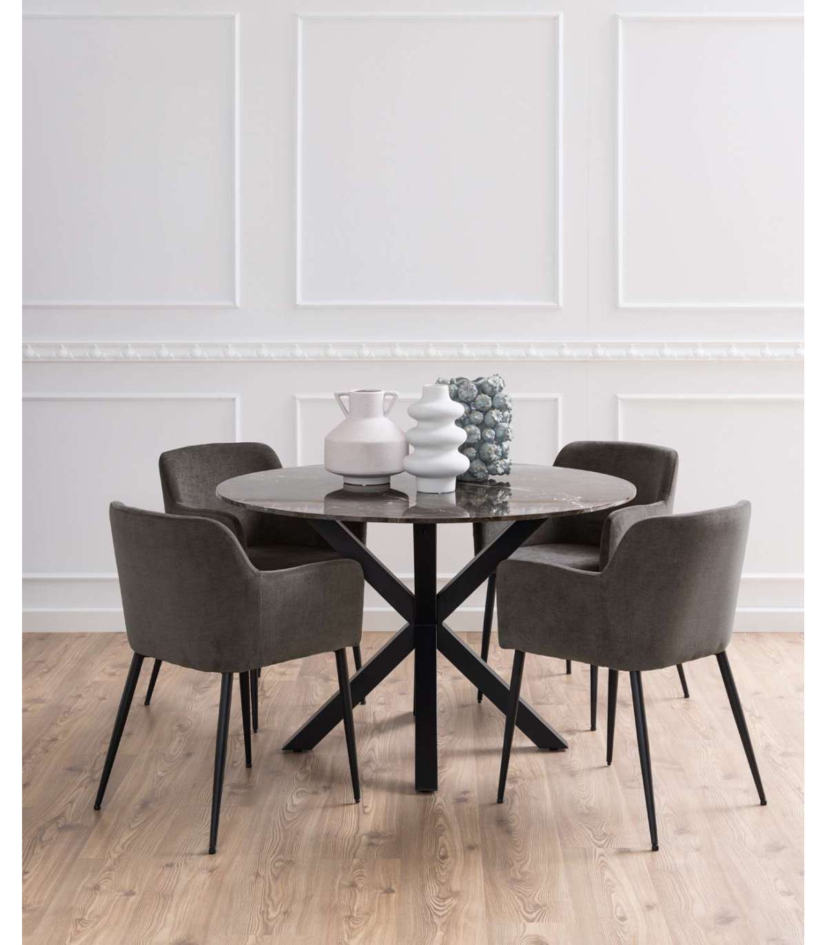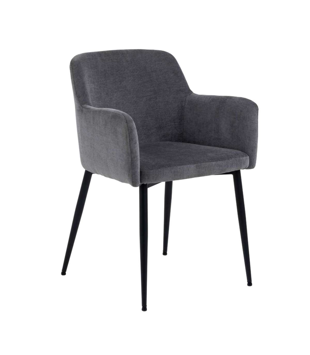 Kaasaegne söögitool sobib suurepäraselt stiilseks ja mugavaks einestamiseks. Kumer seljatugi. Tool on kaetud pehme kangaga. Jalad: matt must pulbervärvitud metall. Mõõdud 54,5x56xH80cm. HOOLDUS: Hooldus piirdub tolmuimejaga ja plekieemaldamisega. Plekkide eemaldamisel tuleb olla ettevaatlik. Katsetage plekieemaldajaid esmalt vähem nähtaval alal ja tegutsege vastavalt tulemusele. Ärge kunagi kasutage lahusteid. Ärge asetage mööblit otsese päikesevalguse kätte. Alus: Kasutage igapäevaseks puhastamiseks õrnas seebivees tugevasti väänatud lappi. Rooste vältimiseks pühkige lapiga kuivaks. Ärge hõõruge pinda kõvade esemetega.