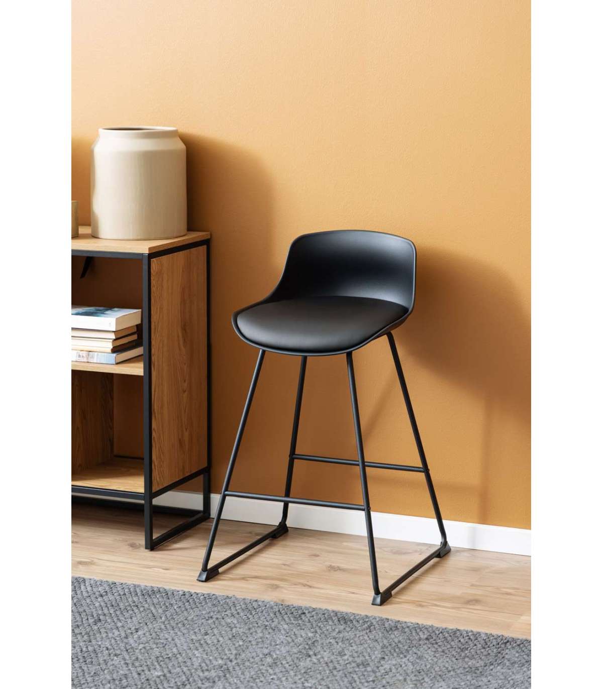 Suurepärane lahendus väiksema köögiga kodudesse. Metallist alus annab toolile kerge välimuse. Lisatud on ka jalatugi. Istmel on madal seljatugi. Kunstnahast istmepadi suurendab mugavust veelgi. Alus: mattmust pulbervärvitud metall. Mõõdud on 50x49xH84cm. HOOLDUS: puhastage pinda seebiveega või PU (polüuretaan) pindade puhastusvahenditega ja kuivatage pind. Kasutage ainult PH neutraalseid (7,0) puhastusvahendeid. Ärge asetage mööblit otsese päikesevalguse kätte. Alus: Kasutage igapäevaseks puhastamiseks seebiveest kuivaks väänatud lappi. Rooste vältimiseks pühkige pind kuivaks. Ärge hõõruge pinda kõvade esemetega.