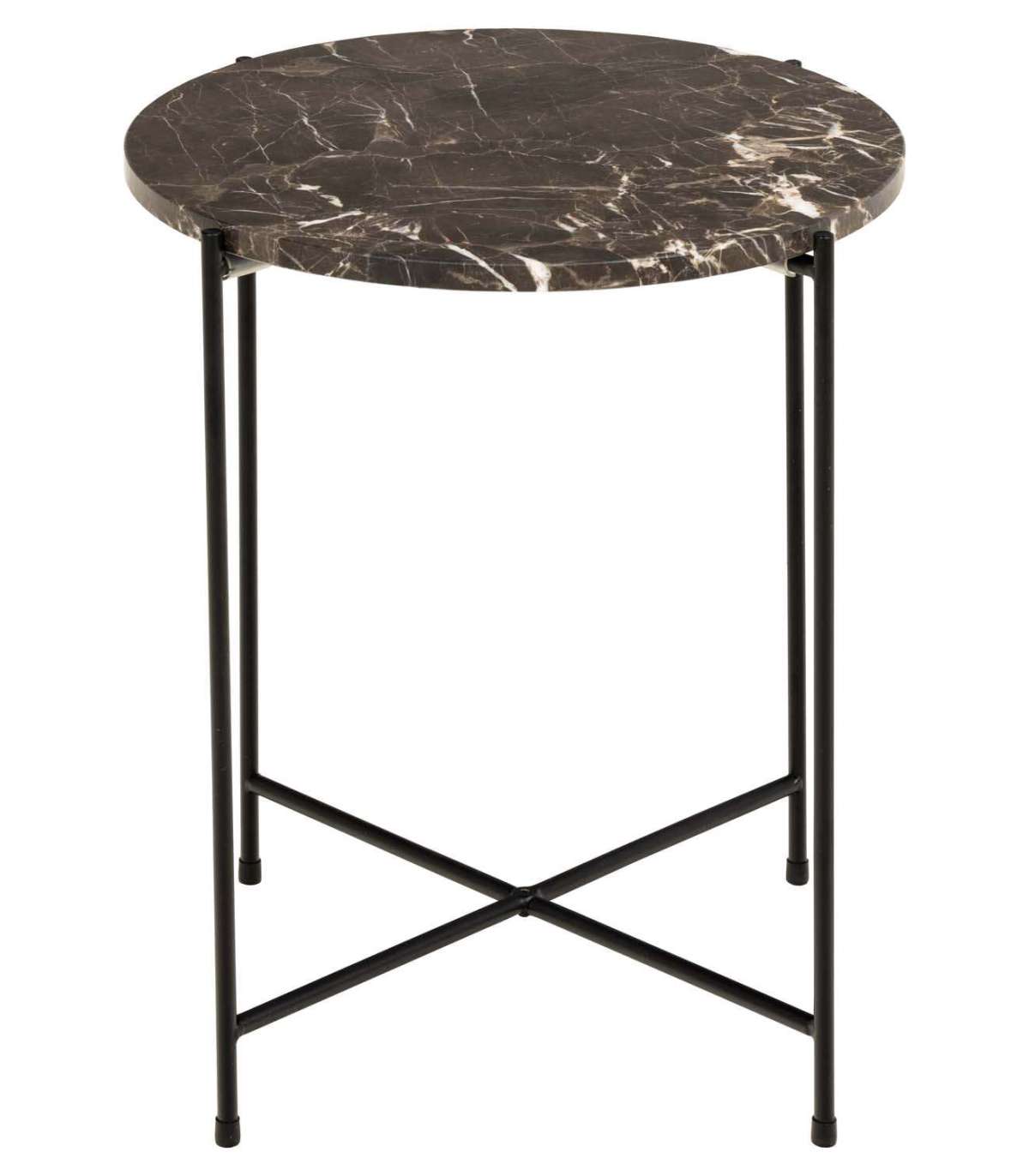Diivanilaud võib olla väike, kuid see on pilkupüüdev. Laual on pruunist marmorist lauaplaat, mis on varieeruva tonaalsusega. Materjali loomulikust iseloomust tingituna võivad esineda väikesed värvierisused. Peenete mustade jalgade ja ristdetailiga abilaud on kaunis sisustuselement igas kodus. Alus on valmistatud pulbervärvitud metallist. Mõõdud D42xH45cm.