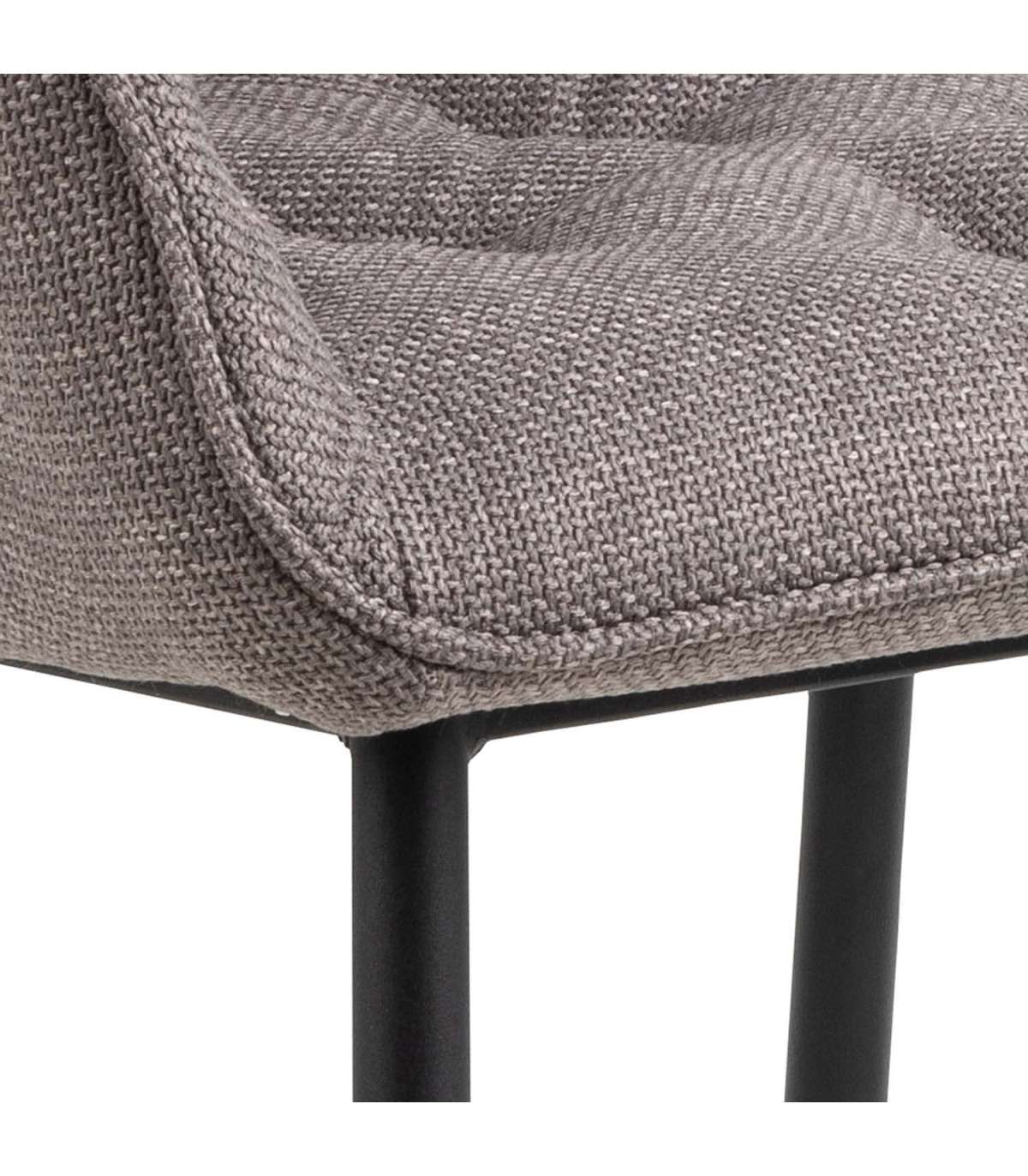 Lisage söögitoale iseloomu ajatu siluetiga. Polsterdatud bukleekangaga. Detailid lisavad istmele tekstuuri ja struktuuri, mida toetavad nurga all olevad jalad. Kangas helehallikas pruun. Jalad matt musta värvi pulbervärvitud metall. Mõõdud 58x55xH83cm. HOOLDUS: Hooldus piirdub tolmuimeja ja plekieemaldamisega. Plekkide eemaldamisel tuleb olla ettevaatlik. Katsetage plekieemaldajaid esmalt vähem nähtaval alal. Ärge kasutage lahusteid. Ärge asetage mööblit otsese päikesevalguse kätte. Alus: Kasutage igapäevaseks puhastamiseks seebiveest kuivaks väänatud lappi. Rooste vältimiseks pühkige pind kuivaks. Ärge hõõruge pinda kõvade esemetega.