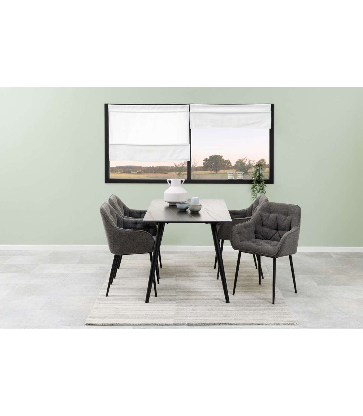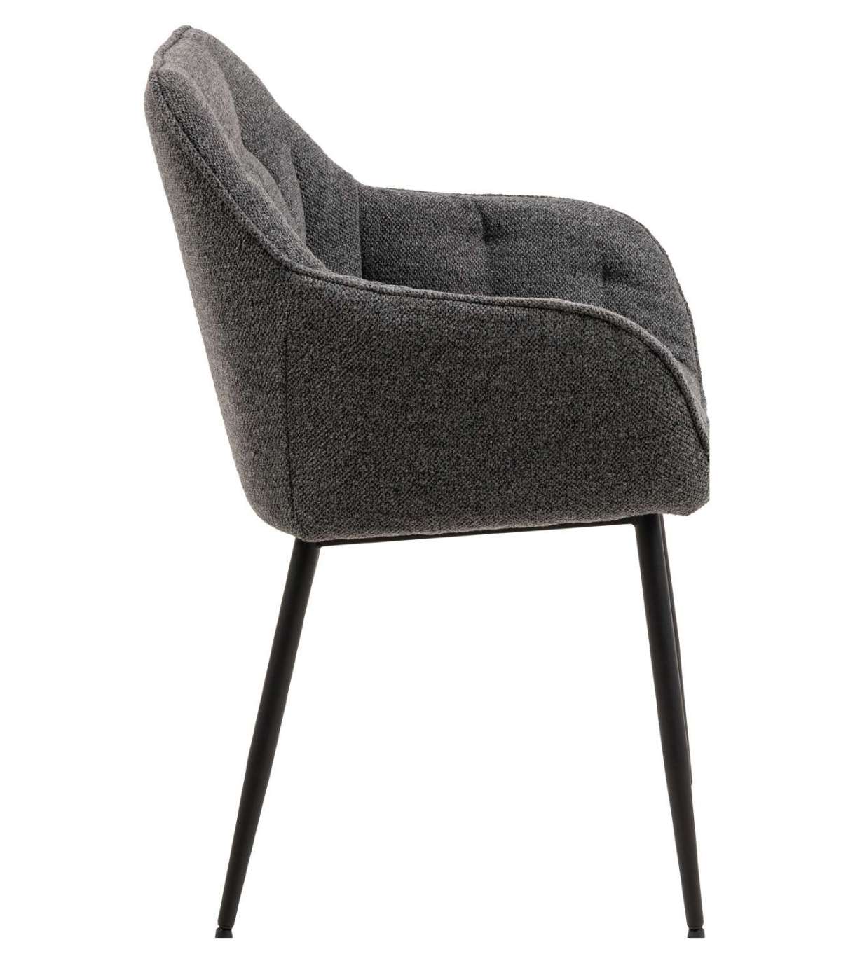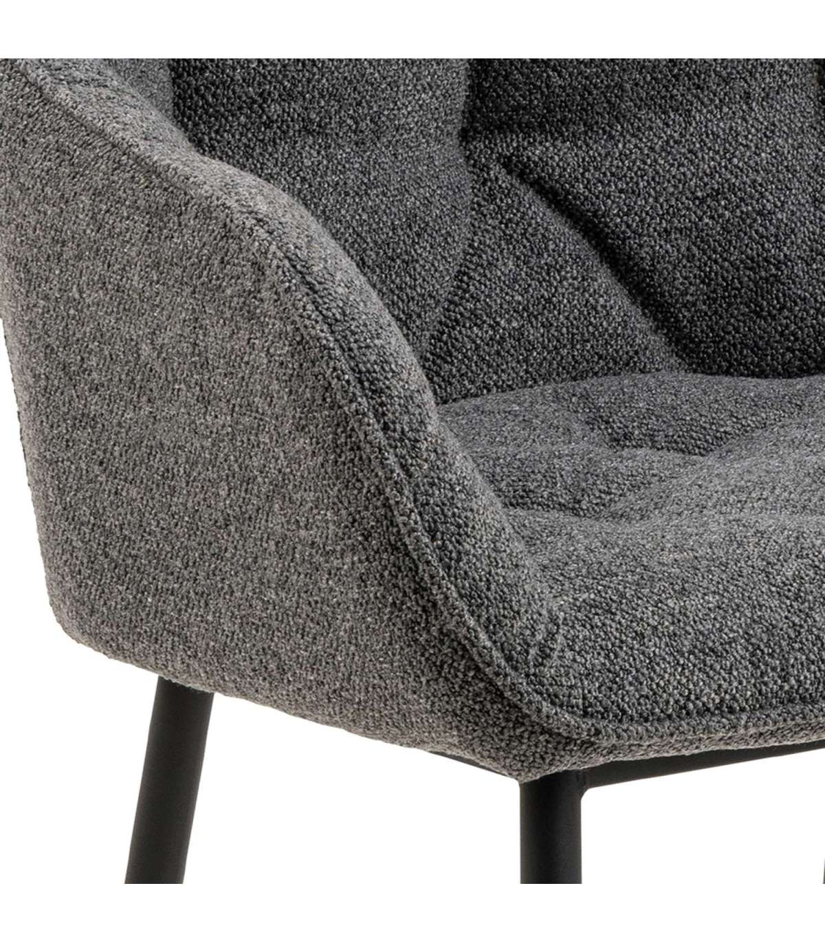 Ajatu siluett. Polsterdatud bukleekangaga. Nurga all olevad jalad, mattmust pulbervärvitud metall. Mõõdud 58x55xH83cm. HOOLDUS: Hooldus piirdub tolmuimejaga ja plekieemaldamisega. Plekkide eemaldamisel tuleb olla ettevaatlik. Katsetage plekieemaldajaid esmalt vähem nähtaval alal ja tegutsege vastavalt tulemusele. Ärge kunagi kasutage lahusteid. Ärge asetage mööblit otsese päikesevalguse kätte. Alus: Kasutage igapäevaseks puhastamiseks õrnas seebivees tugevasti väänatud lappi. Rooste vältimiseks pühkige lapiga kuivaks. Ärge hõõruge pinda kõvade esemetega.