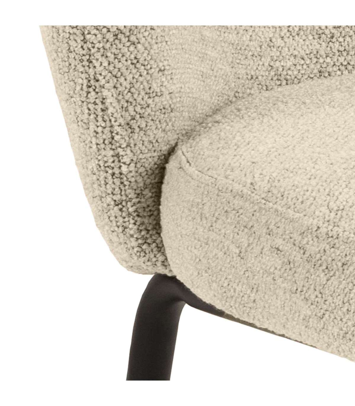 Muutke oma söögituba veelgi elegantsemaks. Bukleekangas lisab toolile moodsa välimuse. Kangast kate on lukuga. Ümar seljaosa toetab ja muudab istumise mugavamaks. Jalad: mattmust pulbervärvitud metall. Mõõdud on 47x59xH82cm. HOOLDUS: Hooldus piirdub tolmuimejaga ja plekieemaldamisega. Plekkide eemaldamisel tuleb olla ettevaatlik. Katsetage plekieemaldajaid esmalt vähem nähtaval alal ja tegutsege vastavalt tulemusele. Ärge kunagi kasutage lahusteid. Ärge asetage mööblit otsese päikesevalguse kätte. Alus: Kasutage igapäevaseks puhastamiseks seebiveest kuivaks väänatud lappi. Rooste vältimiseks pühkige pind kuivaks. Ärge hõõruge pinda kõvade esemetega.