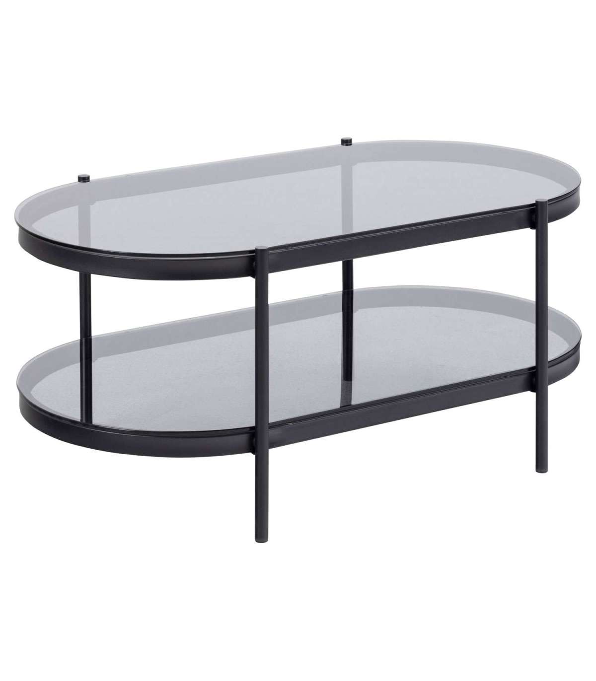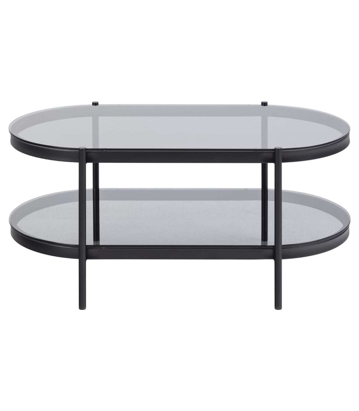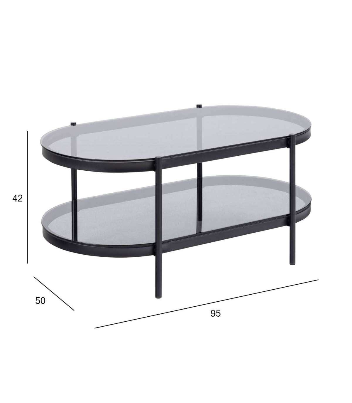 Lauaplaat on suitsuklaasist, must pulbervärviga kaetud metallraam. Lauaplaadi all on suitsuklaasist riiul, mis annab lisaruumi raamatutele ja ajakirjadele. Karastatud klaas. HOOLDUS: Hoidke klaasipind puhas, et vältida kriimustusi. Pihustage klaasipuhastusvahendit ja pühkige seda mikrokiudlapi või paberrätikuga. Pinnakahjustuste vältimiseks kasutage lauamatte ja klaasialuseid. Ärge hõõruge pinda kõvade esemetega.