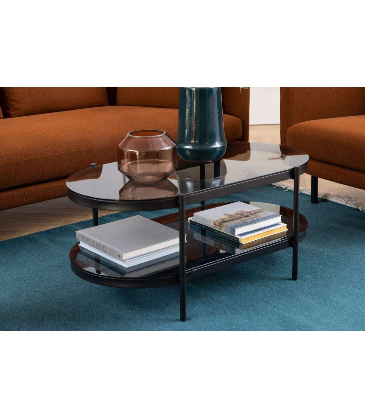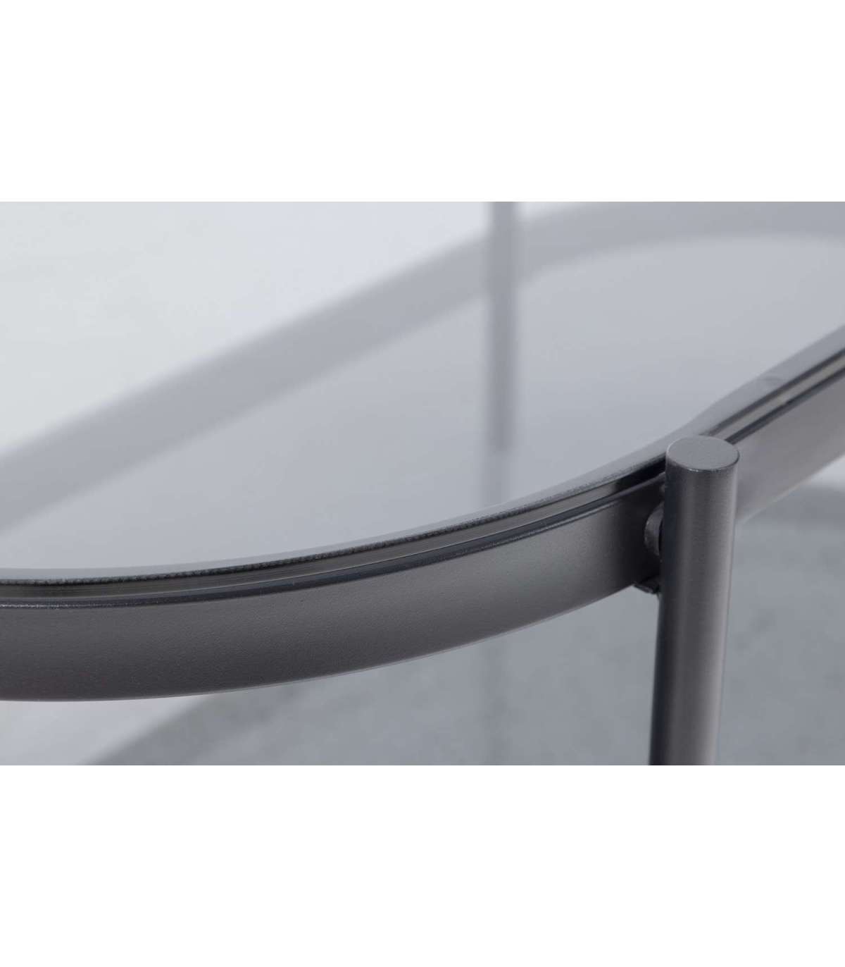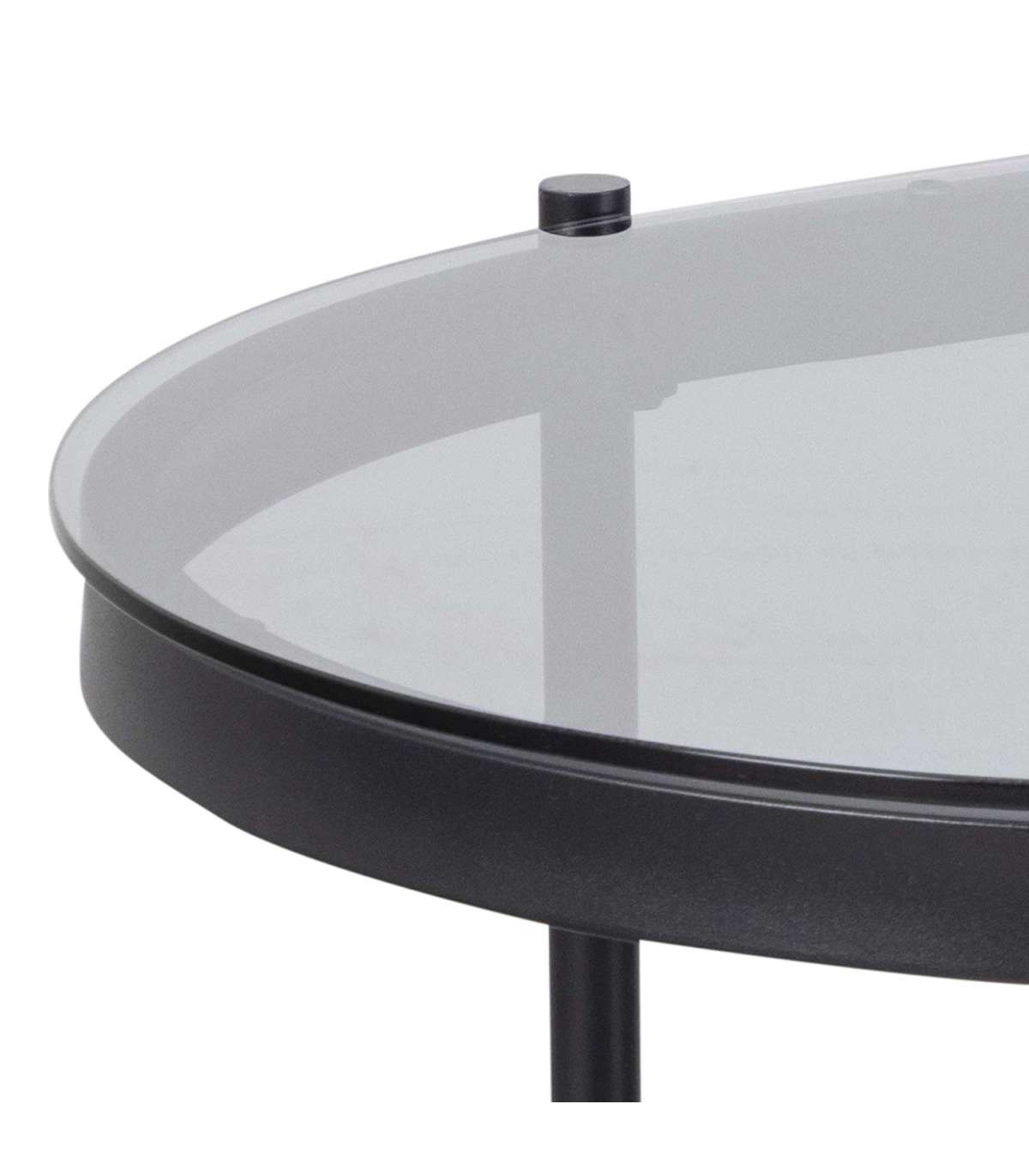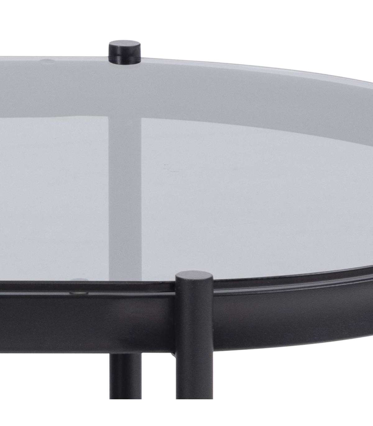Lauaplaat on suitsuklaasist, must pulbervärviga kaetud metallraam. Lauaplaadi all on suitsuklaasist riiul, mis annab lisaruumi raamatutele ja ajakirjadele. Karastatud klaas. HOOLDUS: Hoidke klaasipind puhas, et vältida kriimustusi. Pihustage klaasipuhastusvahendit ja pühkige seda mikrokiudlapi või paberrätikuga. Pinnakahjustuste vältimiseks kasutage lauamatte ja klaasialuseid. Ärge hõõruge pinda kõvade esemetega.