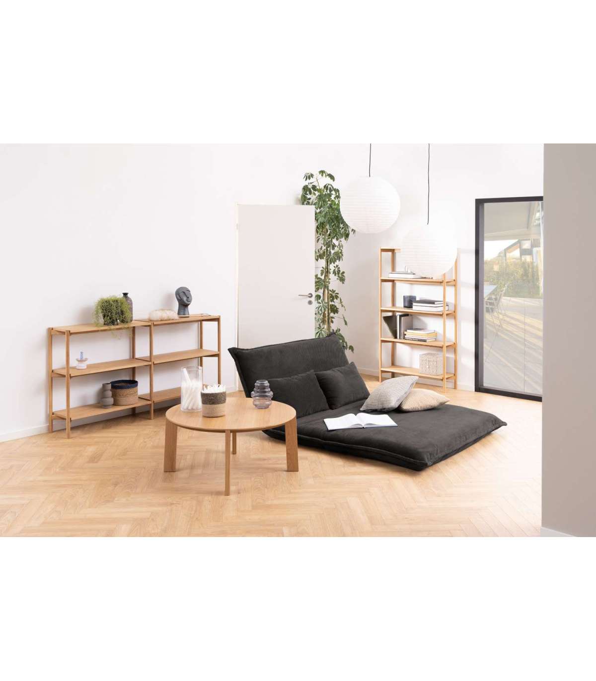 Minimalistlik riiul sobitub igasse interjööri. Raamaturiiul on skandinaavialiku ilmega ja pakub palju hoiuruumi. Avatud riiulid sobivad suurepäraselt meelisesemete esitlemiseks. 4 riiulit, õlitatud tammespoon. Raam ja alus: õlitatud tamm. Mõõdud on 169x30xH88,4cm. HOOLDUS: kõik plekid tuleb koheselt eemaldada niiske lapiga. Kasutage seebiveest kuivaks väänatud lappi ja pühkige pind kuivaks. Klaasialused ja lauamatid aitavad vältida pinnakahjustusi.