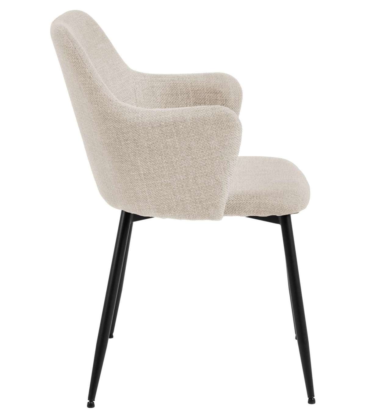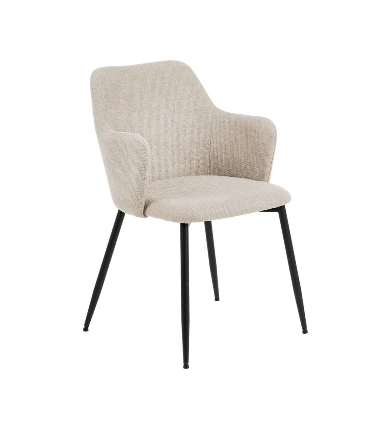 Söögitool muudab interjööri isikupäraseks. Nurga all olevad käetoed annavad toolile iseloomuliku ilme. Metalljalad pakuvad piisavalt stabiilsust, et saaksite nautida eineid mugavalt. Kangast kate on lukuga. Jalad: mattmust pulbervärvitud metall. Mõõdud on 55x58,5xH84,5cm. HOOLDUS: Hooldus piirdub tolmuimejaga ja plekieemaldamisega. Plekkide eemaldamisel tuleb olla ettevaatlik. Katsetage plekieemaldajaid esmalt vähem nähtaval alal ja tegutsege vastavalt tulemusele. Ärge kunagi kasutage lahusteid. Ärge asetage mööblit otsese päikesevalguse kätte. Alus: Kasutage igapäevaseks puhastamiseks seebiveest kuivaks väänatud lappi. Rooste vältimiseks pühkige pind lapiga kuivaks. Ärge hõõruge pinda kõvade esemetega.