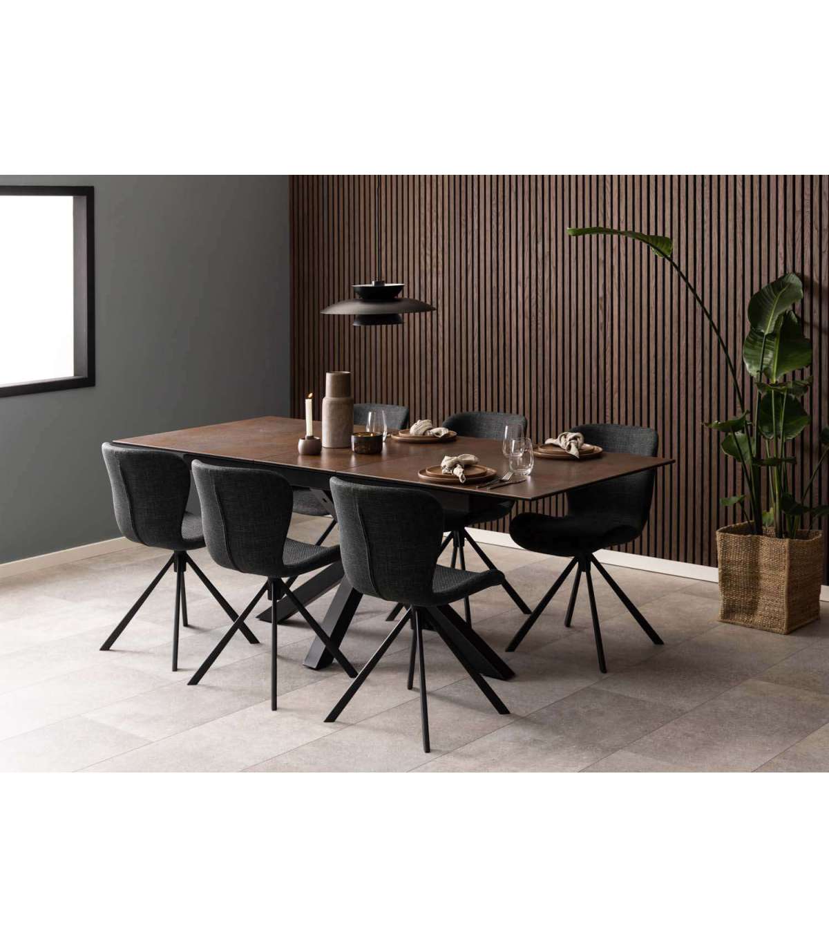 Pehme ja mugav söögitool. Orgaanilise kujuga seljatugi muudab istumise mugavamaks. Polsterdatud kahetoonilise efektiga tumehalli kangaga. Iste kaunistatud siksak-õmblustega. Must pulbervärvitud metallist alus, pöörlev. Toote mõõdud on 46,5x53xH81cm.