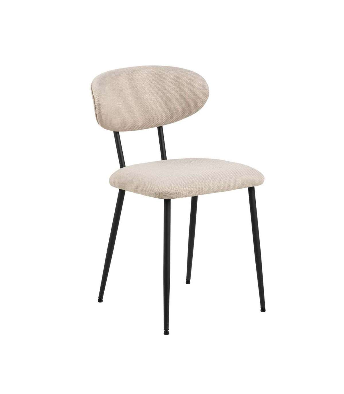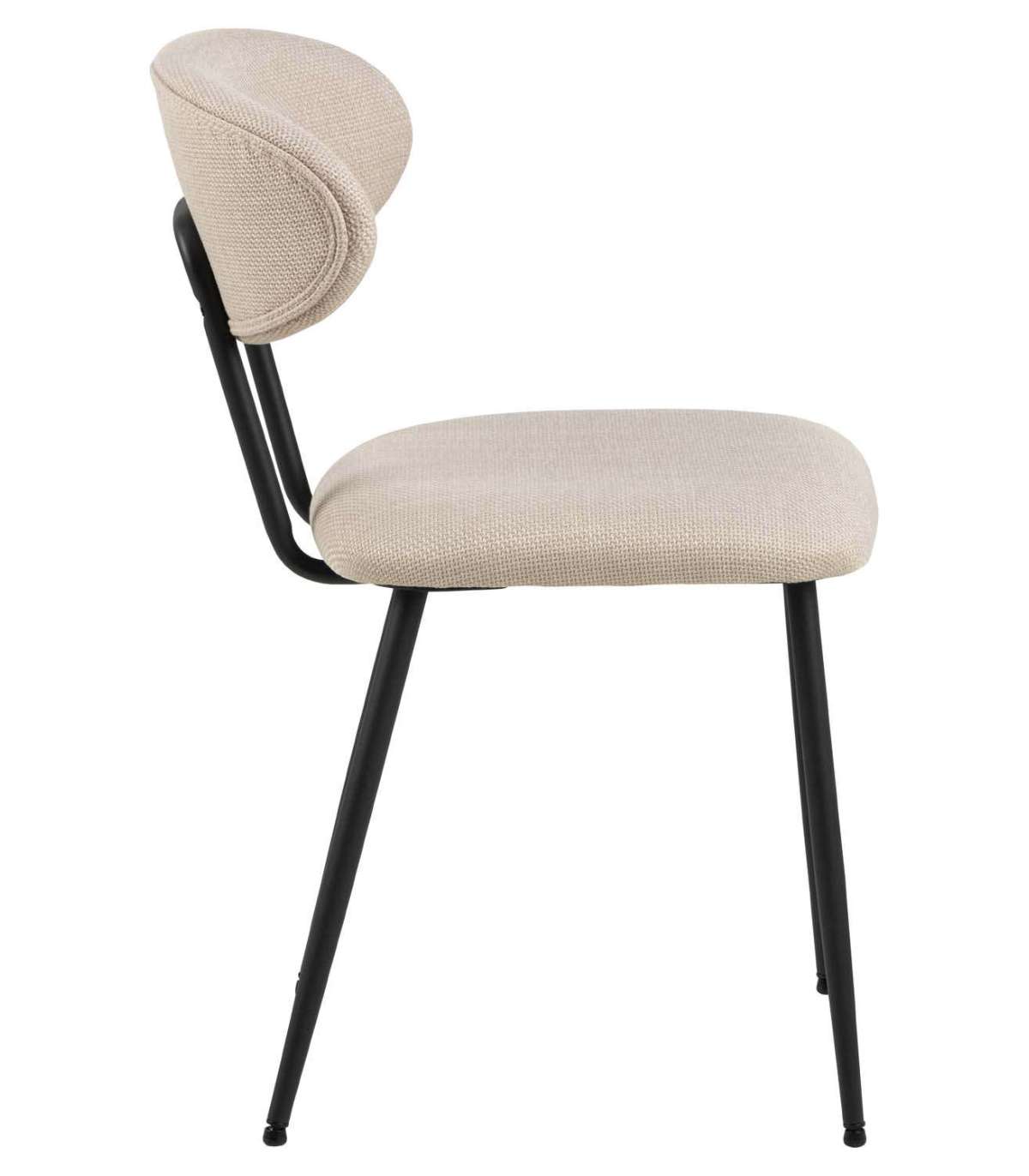 Moodsa ja mitmekülgse välimusega söögitool. Visuaalselt tasakaalus disain sobib igasse koju. Polsterdatud kahetoonilise efektiga beeži kangaga. Kontrastse elemendi loovad peened pulbervärvitud mustad metalljalad. FSC™ sertifikaat. Toote mõõdud on 43,5x53xH78,5cm.