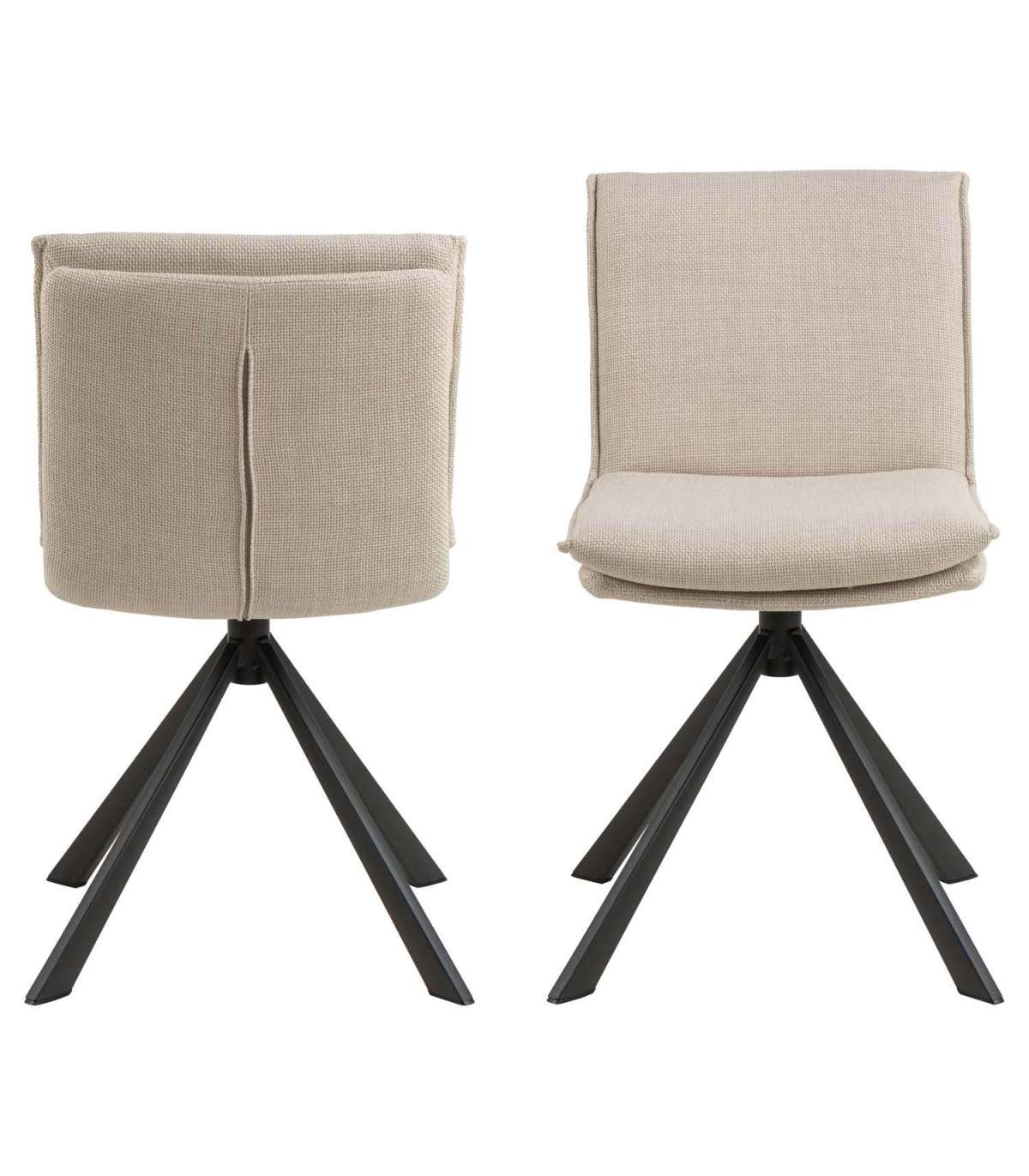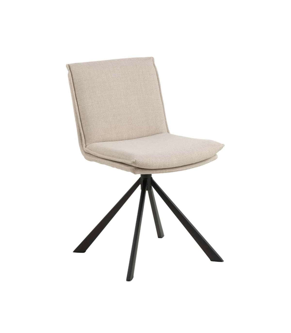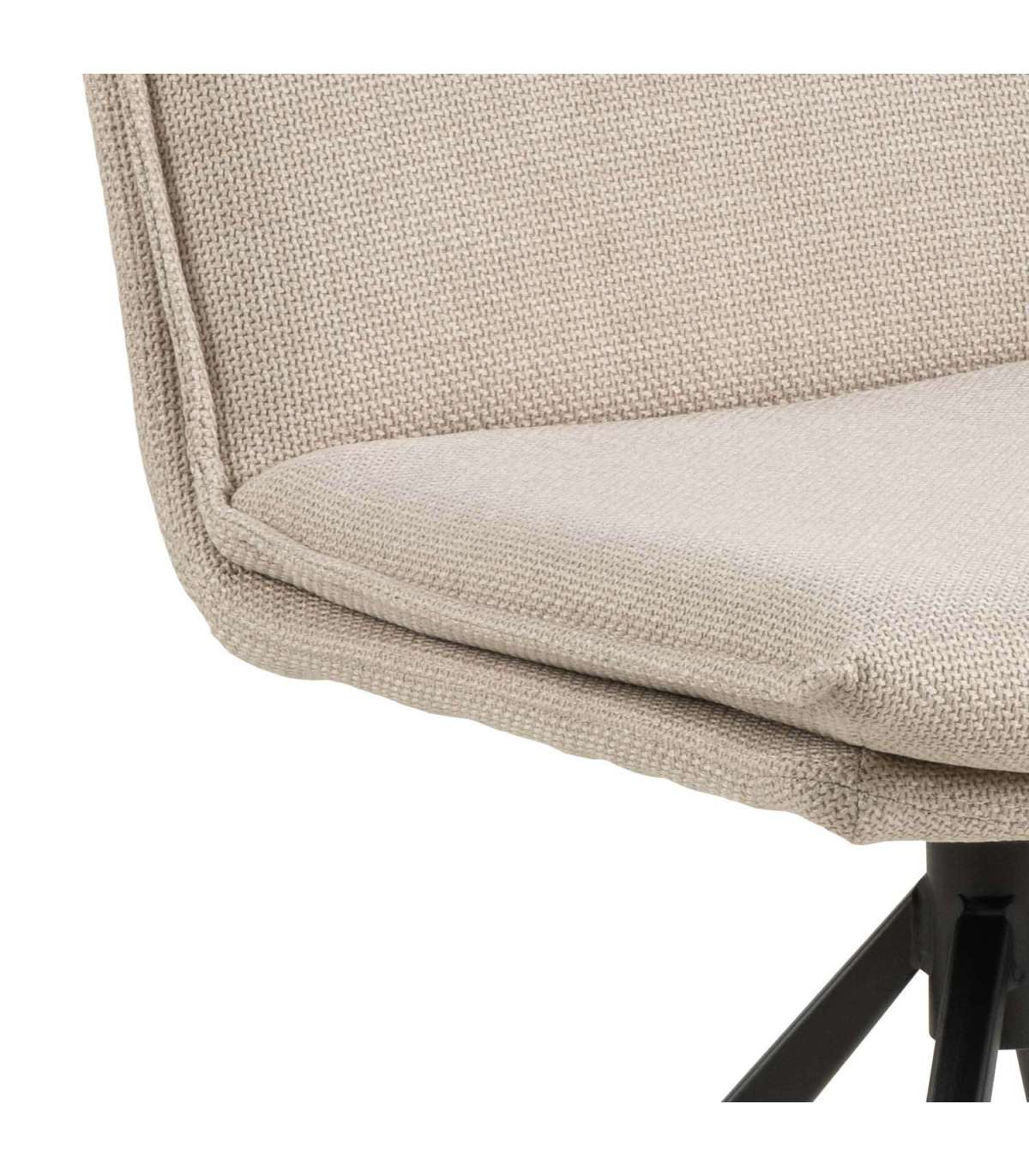 Kaasaegne söögitool. Õmmeldud padjaga iste. Padjal dekoratiivsed õmblused. Polsterdatud kahetoonilise efektiga beeži kangaga. Must pulbervärvitud alus, pöörlev. Toote mõõdud on 47x59xH85cm.