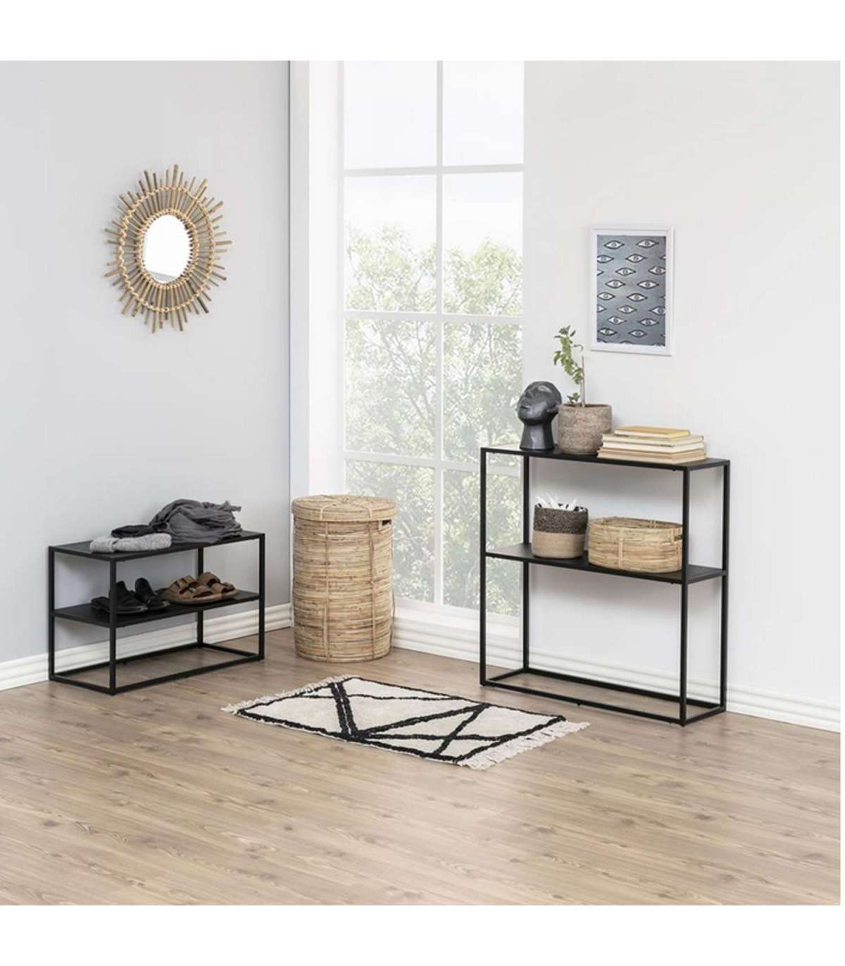 Tooge oma koju tööstuslikku hõngu metallist konsoollauaga. Pulbervärvitud metall toob ruumi kaasaegse tunde ja kitsa disaini tõttu sobib see kõikjale. Kasutage konsoolilauda laheda viisina oma ruumi täiustamiseks, kuid samal ajal ka lisa panipaigana. Materjal: mattmust pulbervärvitud teras. Mõõdud no 79,5x26xH80,5cm.
