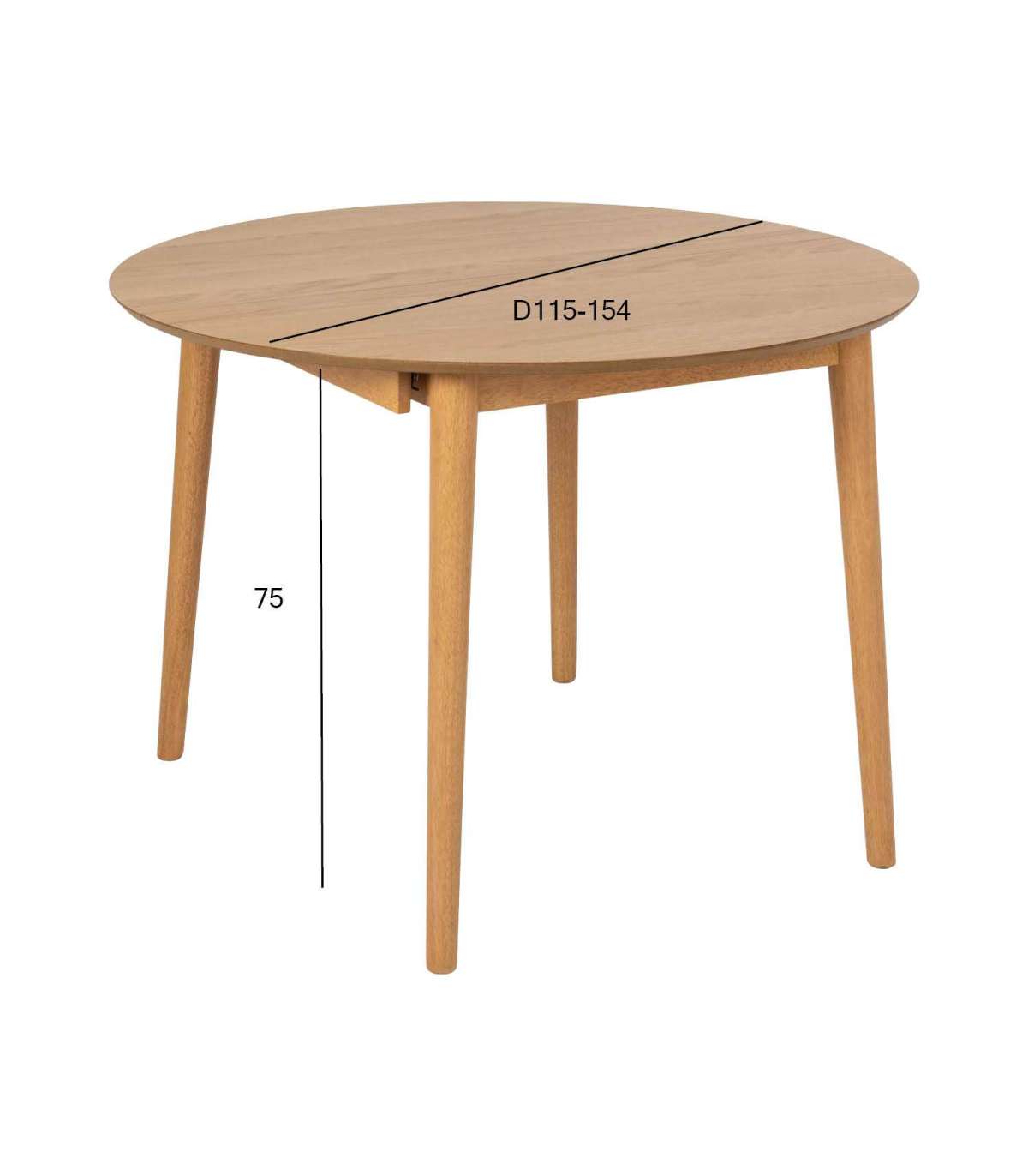 Kena söögilaud mahutab 4-5 inimest. Laua ümar kuju ja tamme välimus toovad soojust. Tänu liblikapikendusele on lauapinda lihtne pikendada. See on lihtne mehhanism, mis ei nõua palju aega ja vaeva. Laua all on panipaik pikendusplaadi jaoks. Toote mõõdud on D115/154xH75cm.
