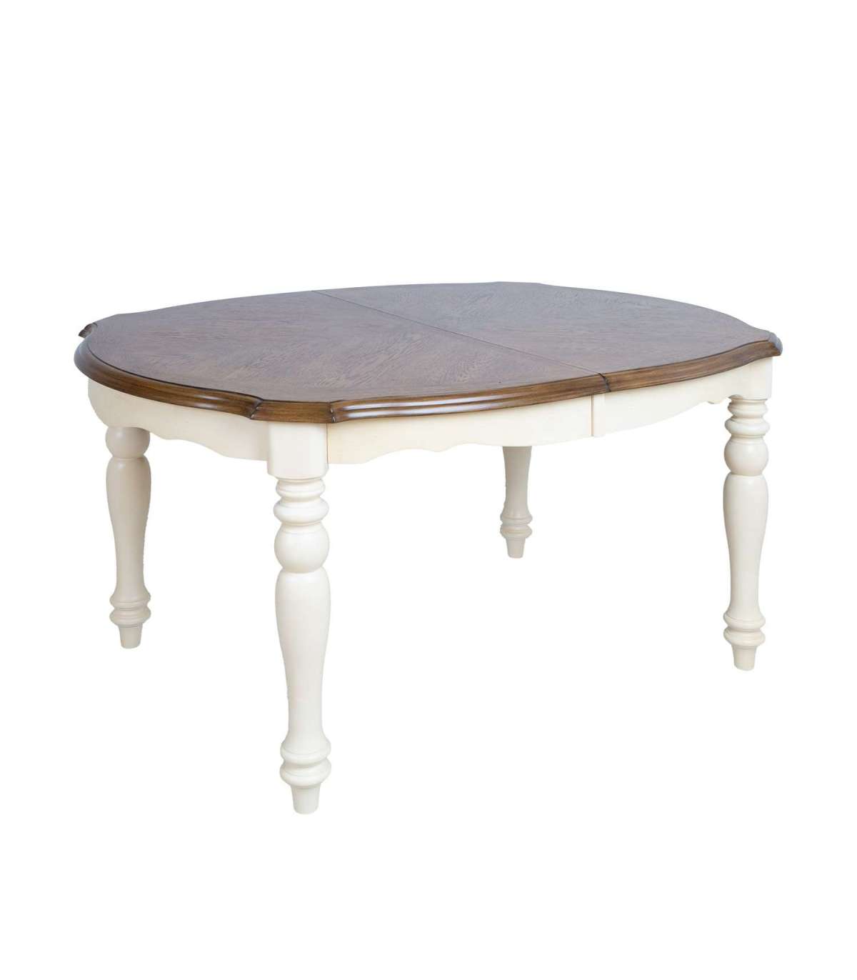 Обеденный стол LILY 137/182x106,5xH76см. Вдохновленный антикварной мебелью, стол LILY является жемчужиной в столовой, добавляя помещению вневременное достоинство и элегантность. Столешница покрыта тщательно подобранным и красиво обработанным шпоном натурального дуба. Шпонированная поверхность покрыта лаком. Краевой профиль столешницы изготовлен из массива дерева. Точеные ножки и основание стола изготовлены из каучукового дерева и окрашены античной белой краской. Стол расширяемый. Стол открывается посередине и складывающаяся посередине удлинительная пластина шириной 45см размещается под столешницей. УХОД: лакированная столешница, покрытая натуральным шпоном, очень чувствительна к влаге и температуре. Всегда используйте коврики под посуду. Любая жидкость, попавшая на стол, должна быть немедленно вытерта мягкой тканью. Избегайте чрезмерного трения и абразивных чистящих средств.