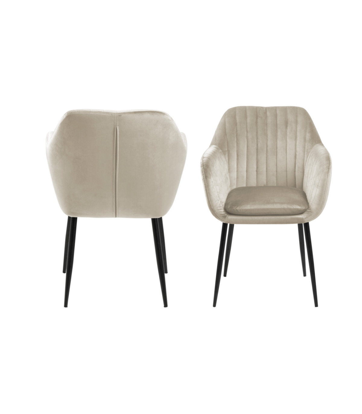 Кресло EMILIA 57x59xH83см, сиденье и спинка: ткань, цвет: бежевый, ножки: чёрный металл. Ткань VIC песок А80. Ограничение по весу: 100 кг.