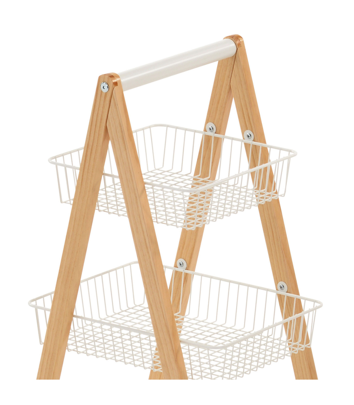 Полка BREN белая. Функциональная трехуровневая полка подходит как для хранения вещей в прихожей, так и для использования в кладовой. Полка на колесиках, что облегчает ее перемещение. Каркас полки изготовлен из массива сосны натурального цвета. Три корзины полки изготовлены из стальной проволоки и покрыты белой порошковой краской. Размеры полки 48x32x79см.