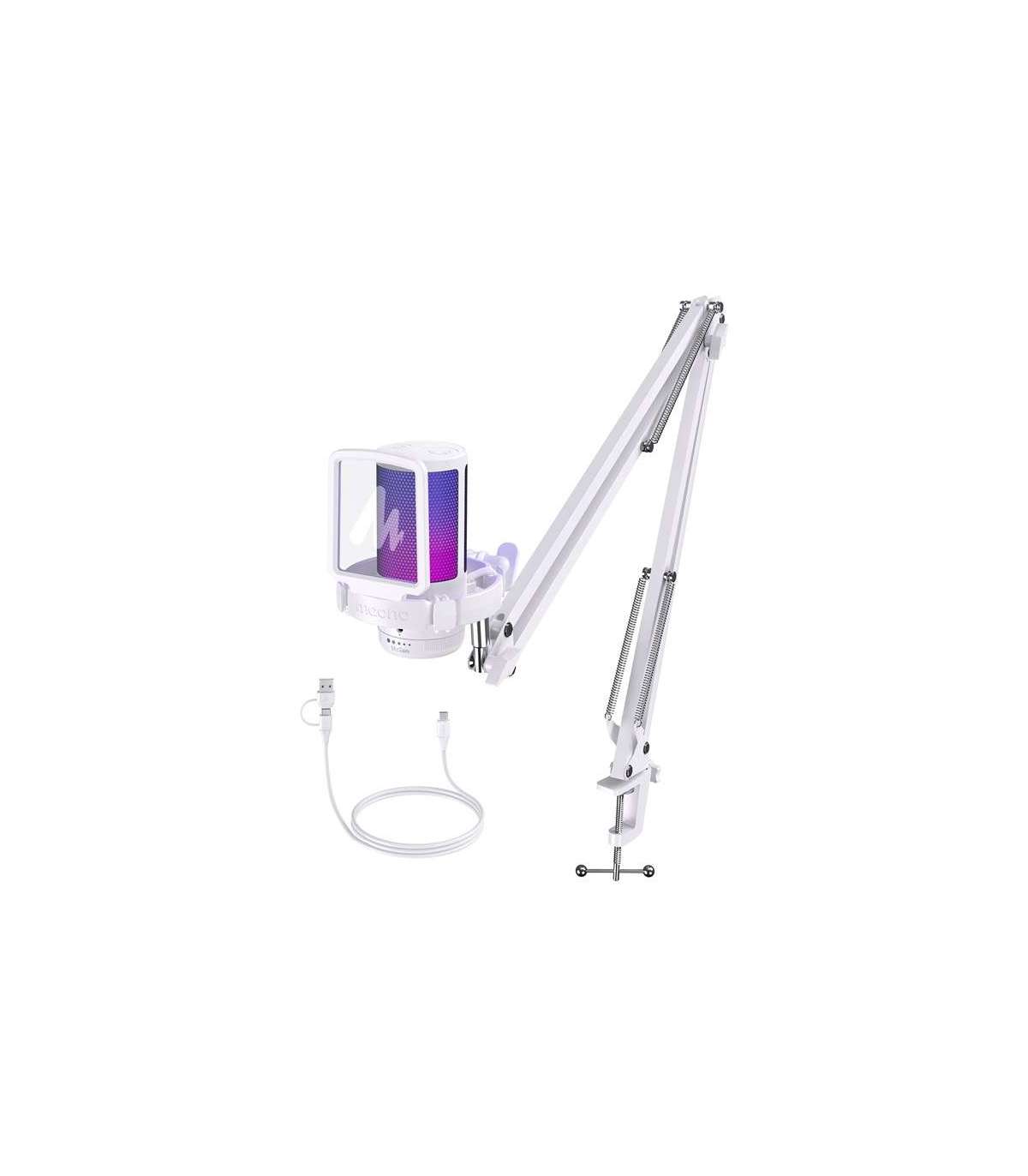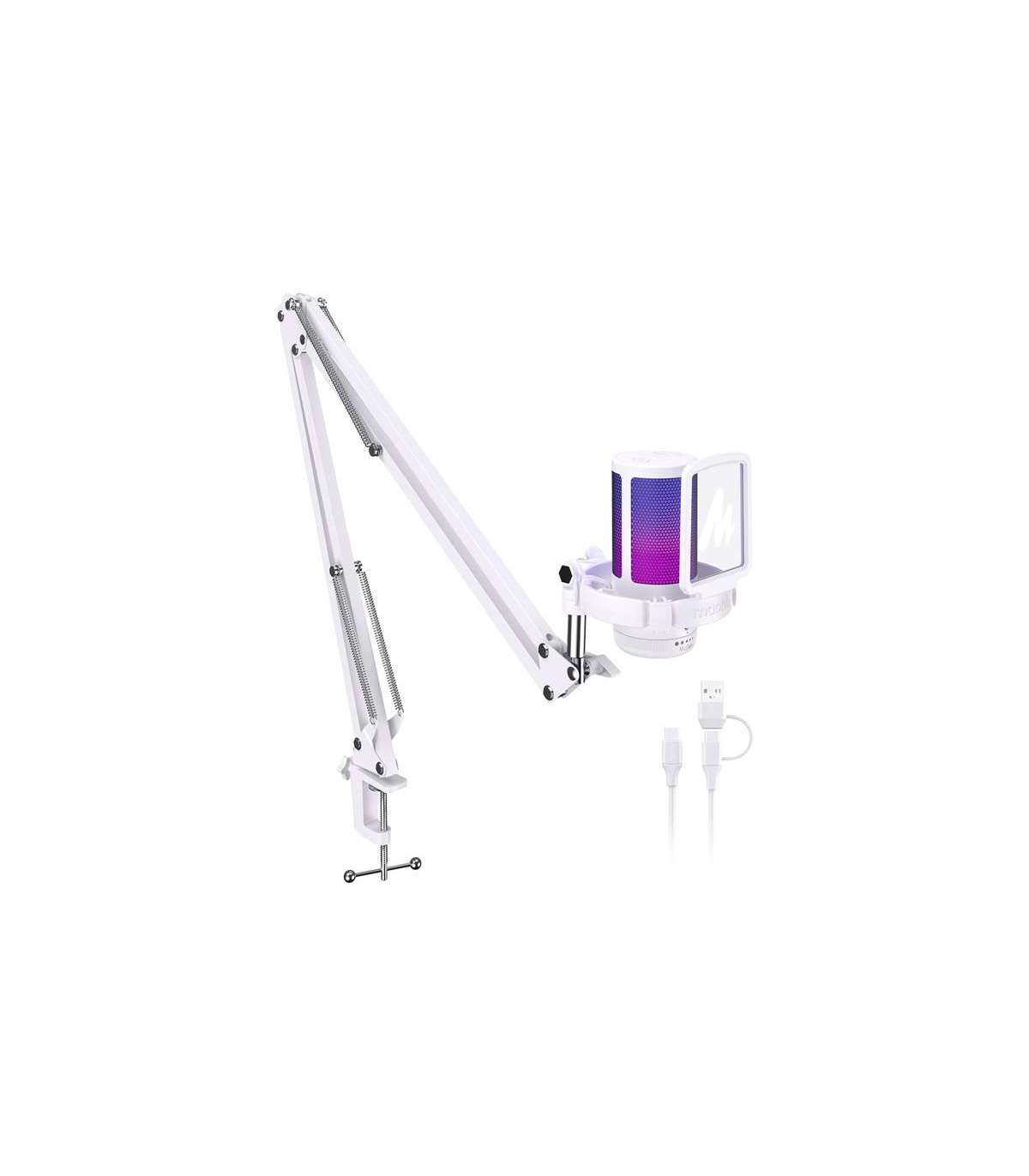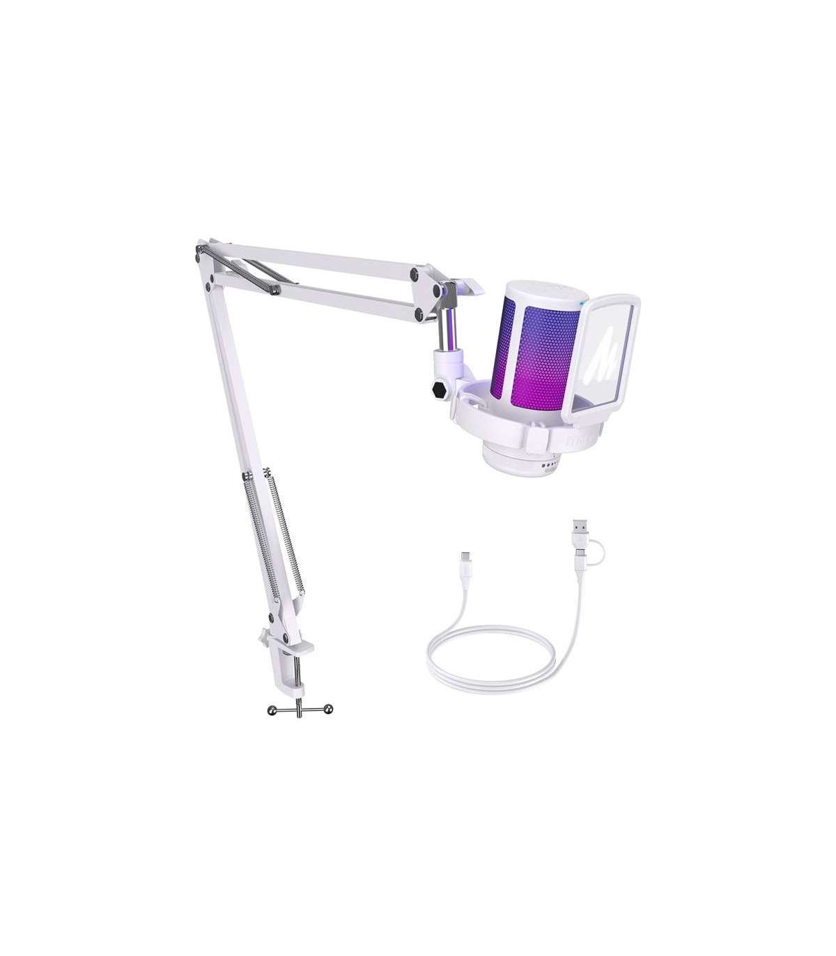 The Maono DGM20S is a USB condenser microphone designed for gamers, streamers and creators who want to achieve clear and clean sound without a complicated setup. It offers active noise cancellation, adjustable microphone sensitivity, RGB backlighting with three modes and one-button quick mute. The microphone is compatible with Windows, macOS and PlayStation 4 and 5 consoles. Note: the product does not work with Xbox. It comes with a sturdy, adjustable arm that allows you to position the device comfortably on your desk.