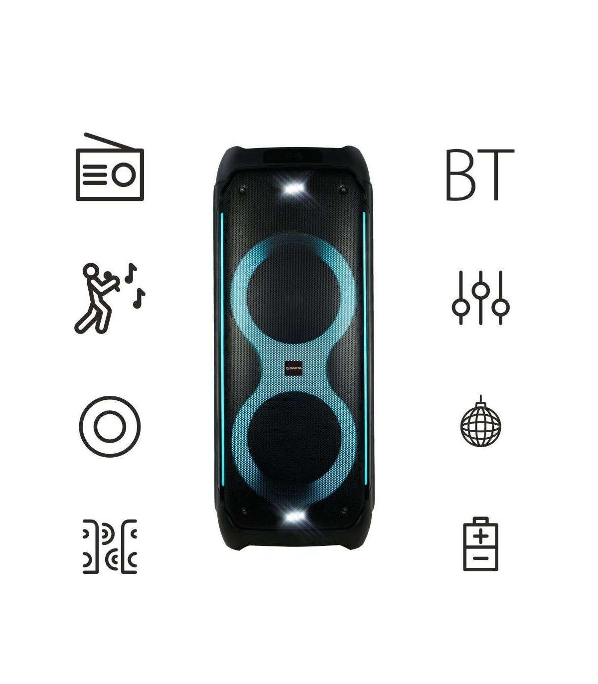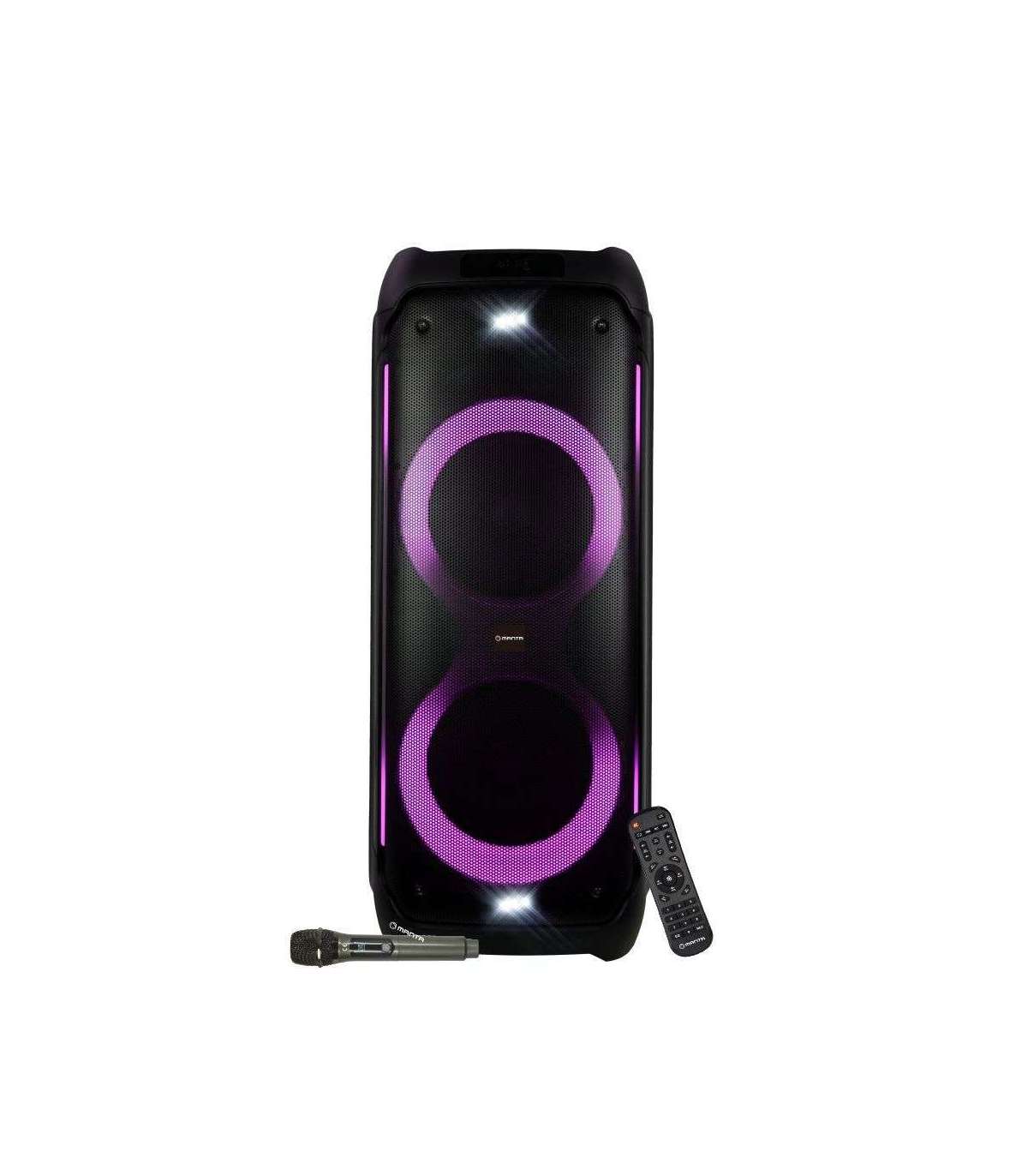 The powerful Manta SPK1001B300 Bluetooth music centre with excellent sound quality and attractive lighting offers a wonderful music experience.