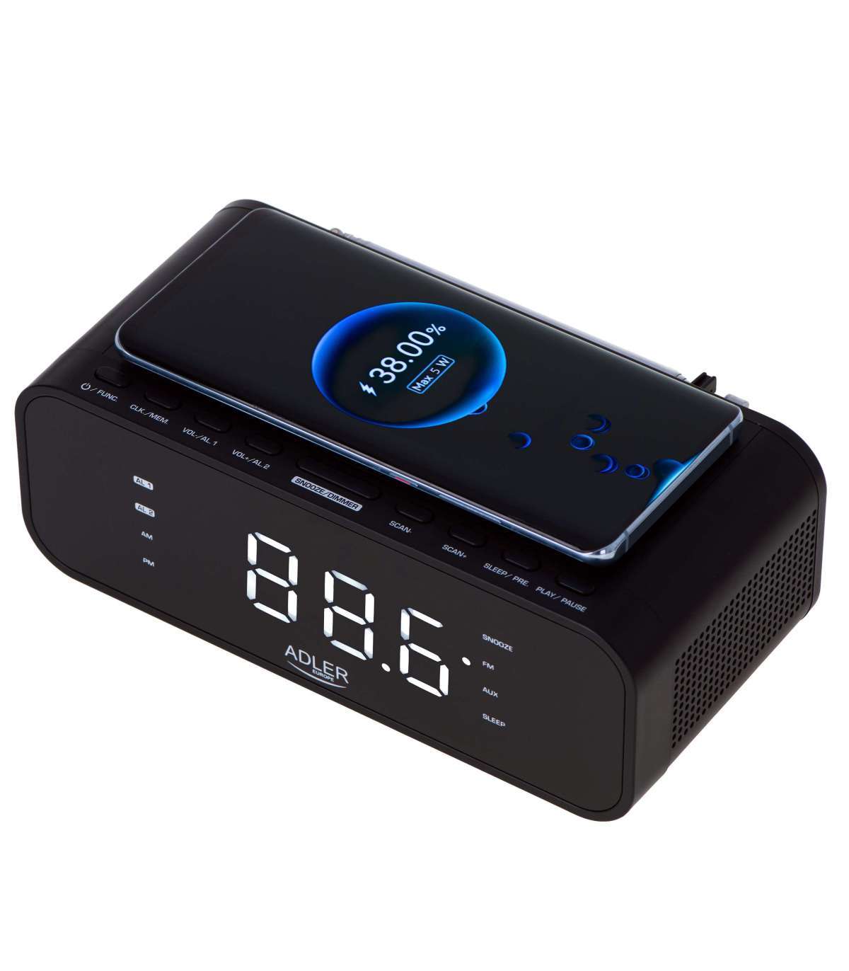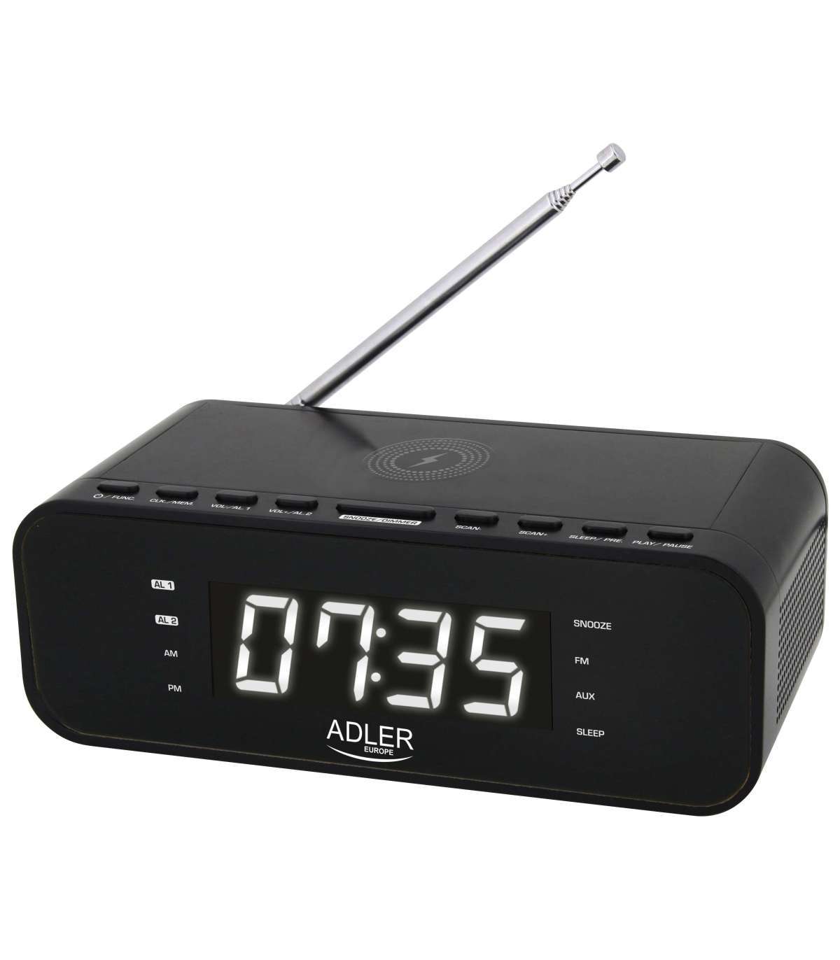 Adler | Alarm Clock with Wireless Charger | AD 1192B | Alarm function | AUX in | Black