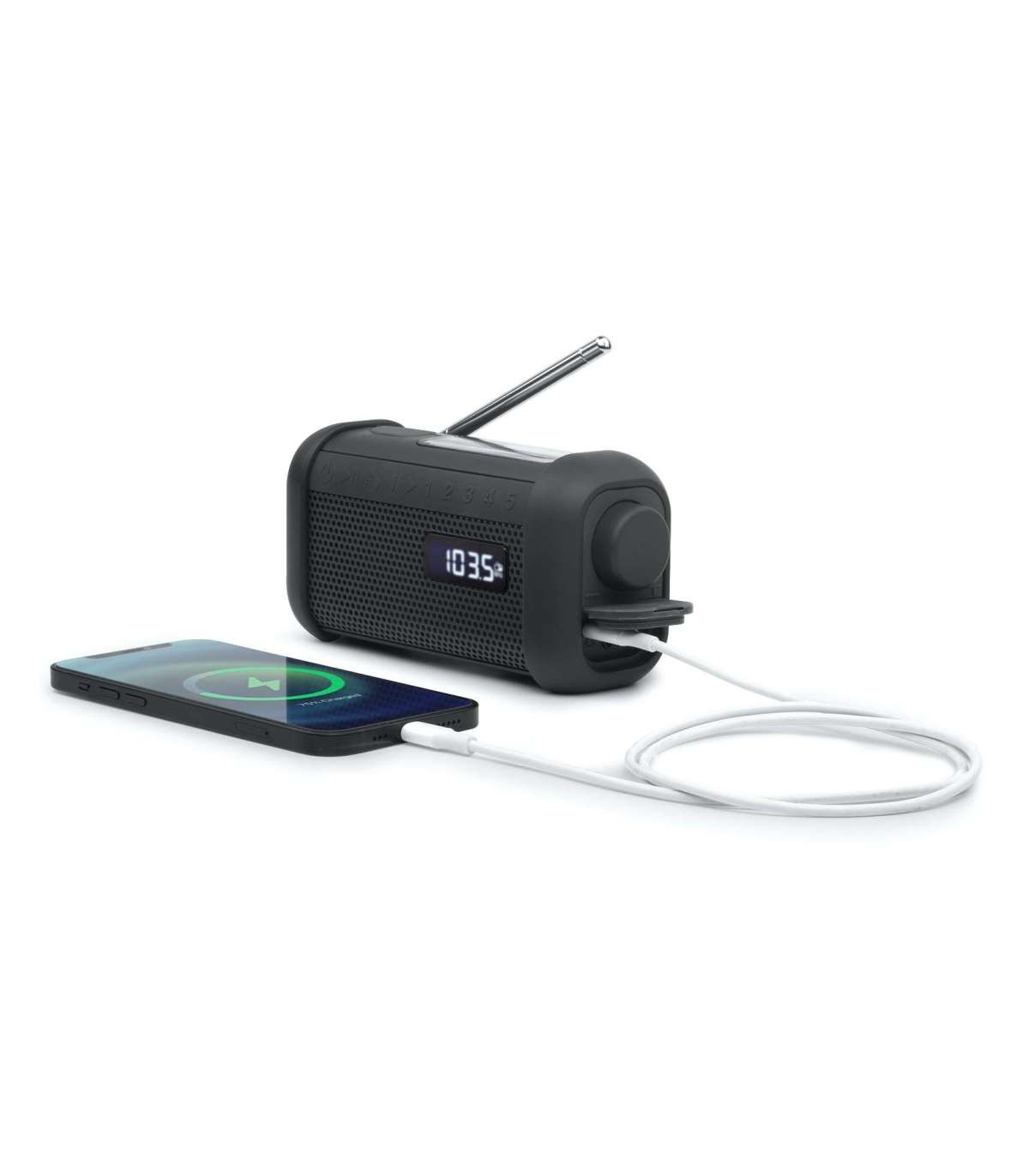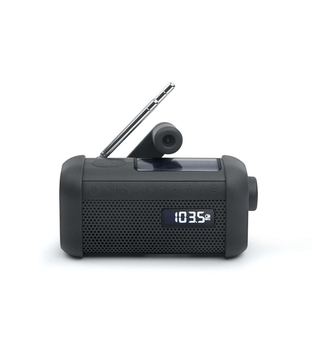 - Portable Solar Radio with Crank and Flashlight