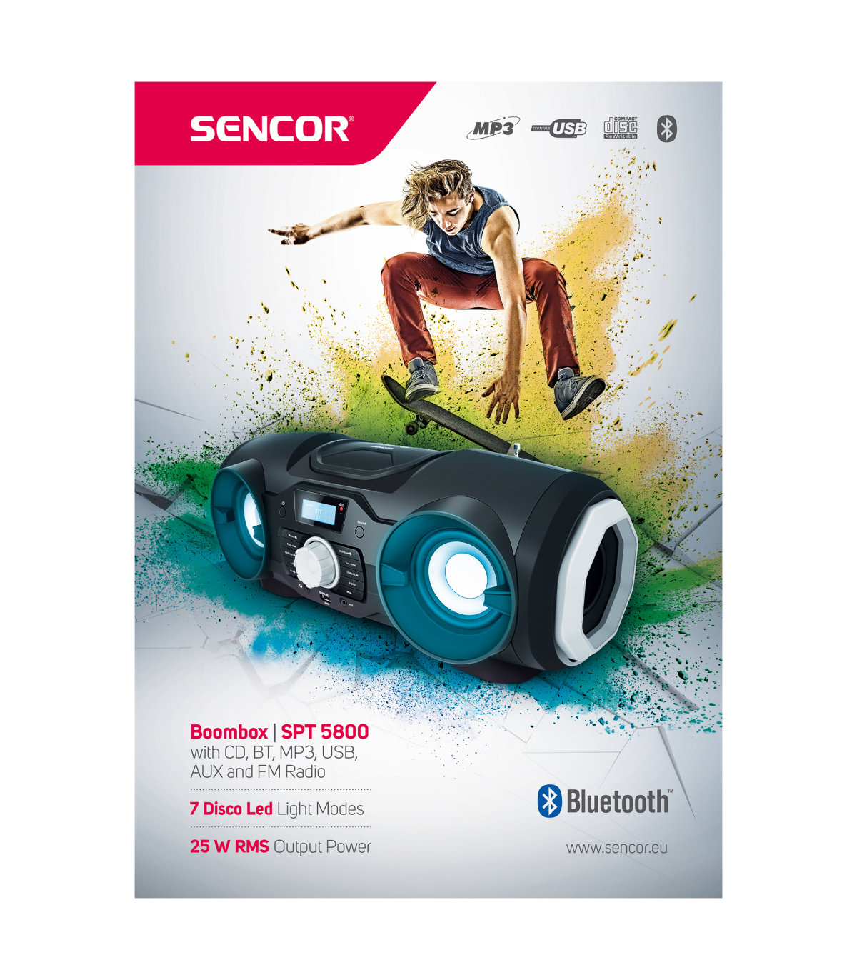 Boombox with CD, BT, MP3, USB, AUX Sencor