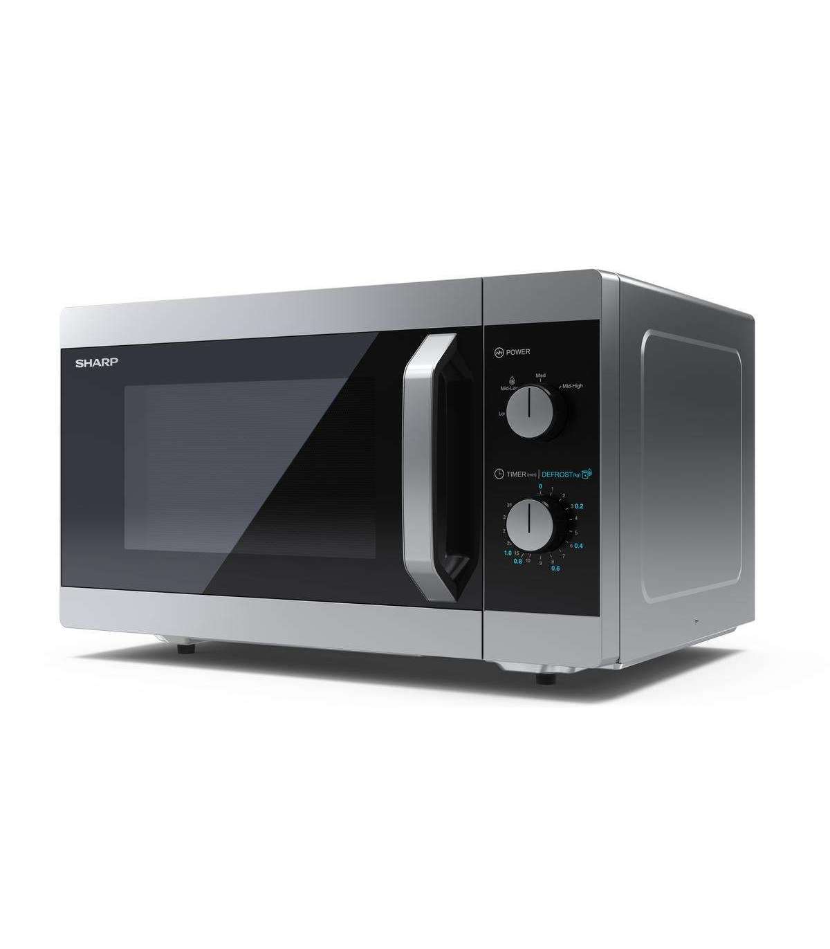 Мощная и вместительная микроволновая печь с элегантным дизайном. Объем 23 л, мощность 900 Вт, 5 уровней мощности, таймер на 35 минут, выбор времени разморозки по весу. Диаметр проигрывателя 25,5 см, габариты (высота х ширина х глубина) 25,9 х 44 х 34,5 см. Черная передняя панель и черная стеклянная дверца, серебристый корпус.