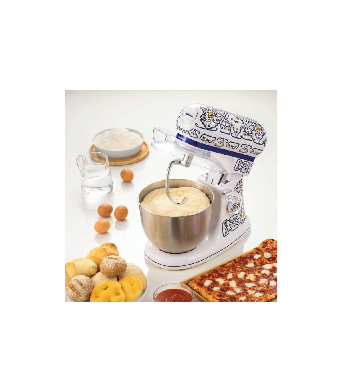 Refined design and top-level functionality turn your kitchen into an oasis of beauty – the Mediterranean charm of this Ariete kneading machine is inspired by the unique and vibrant style of the beautiful island of Capri.