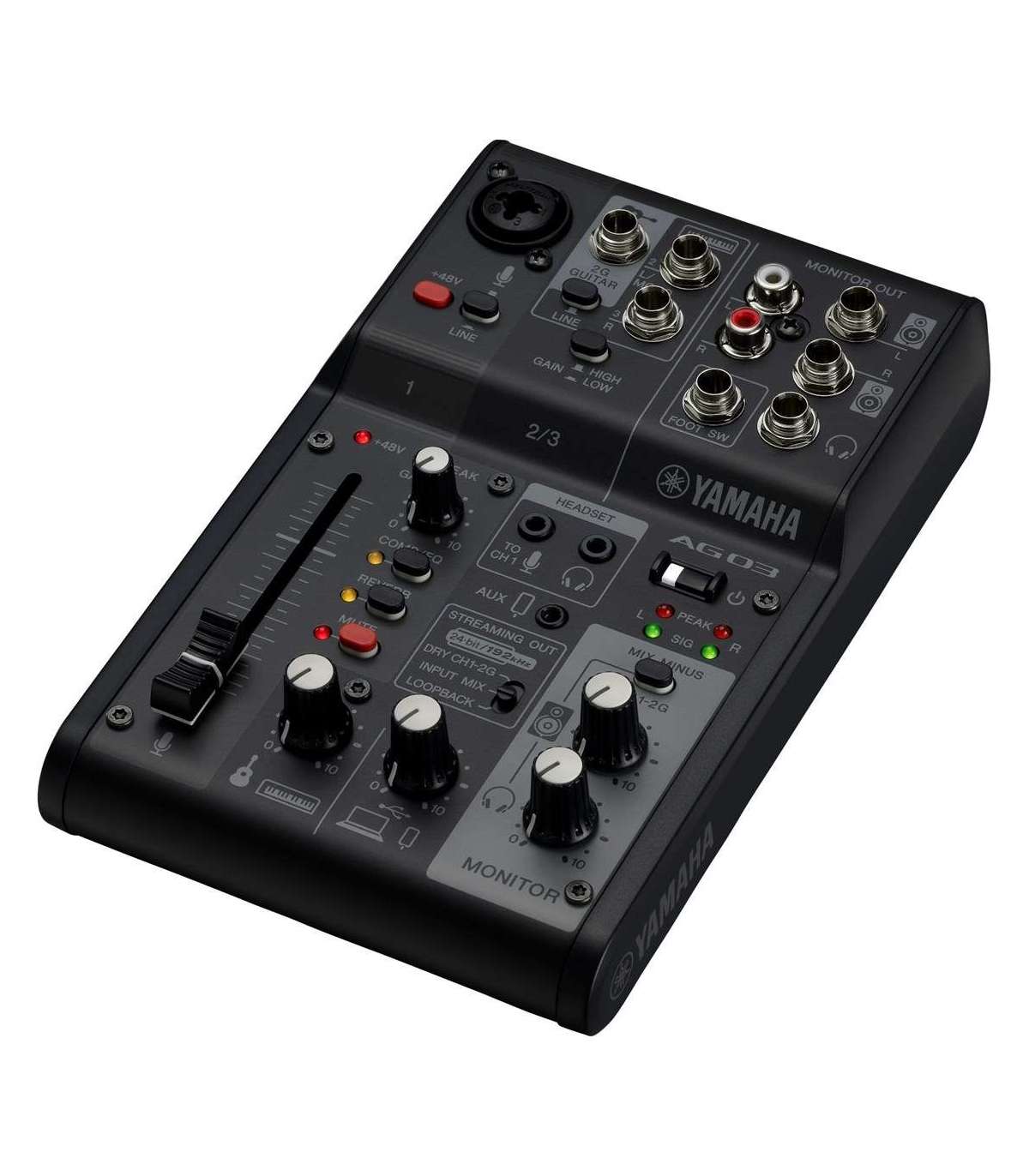 Yamaha AG03 MK2 - 3-channel live streaming mixer with USB audio interface, black