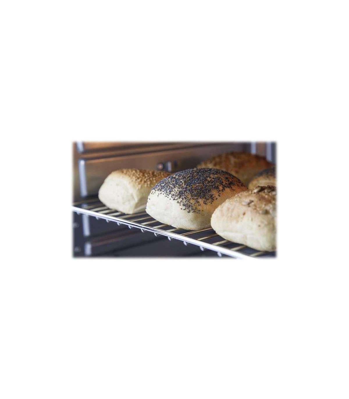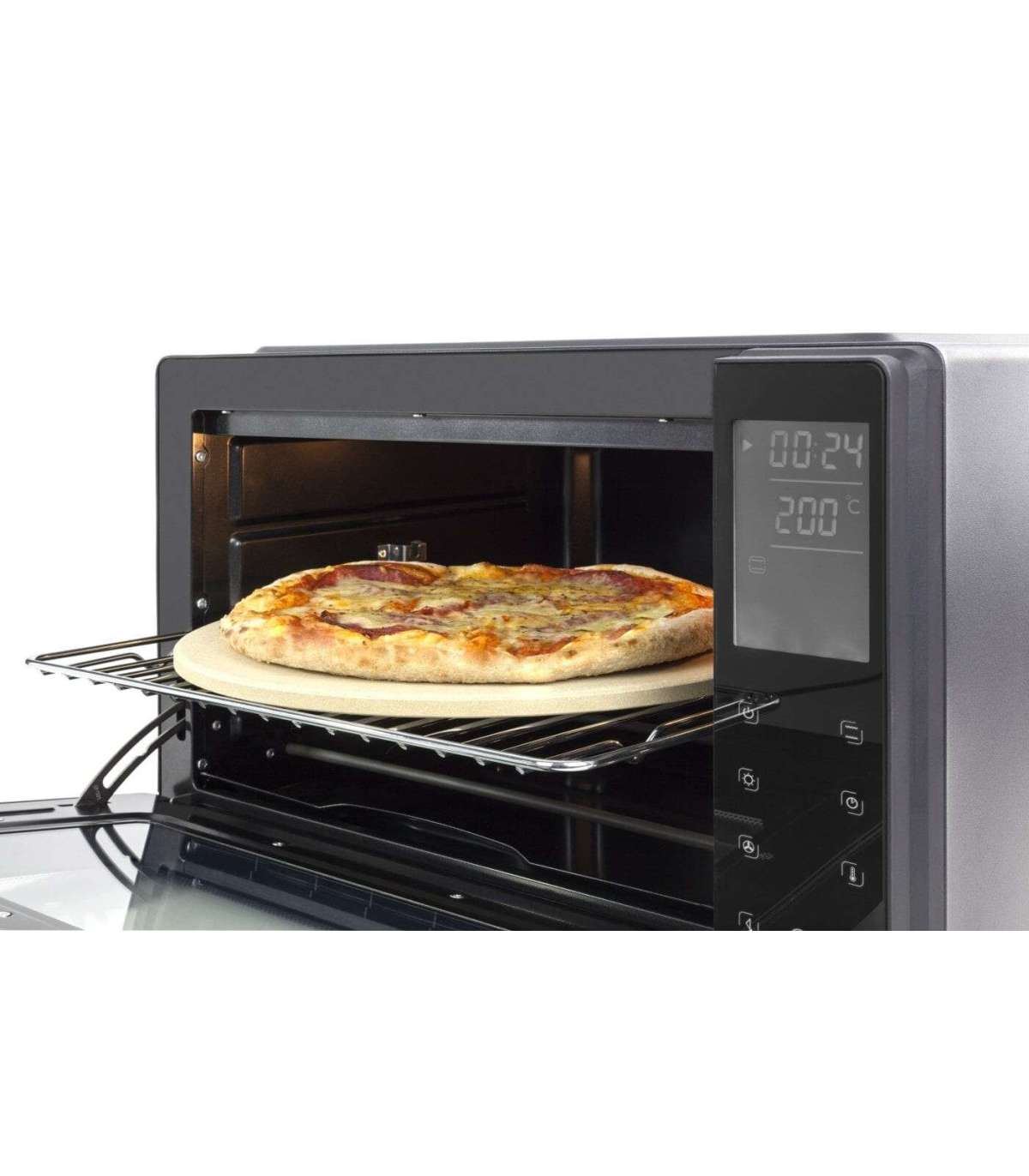 - Stainless steel crumb tray and chromed grillage. Pizza stone.