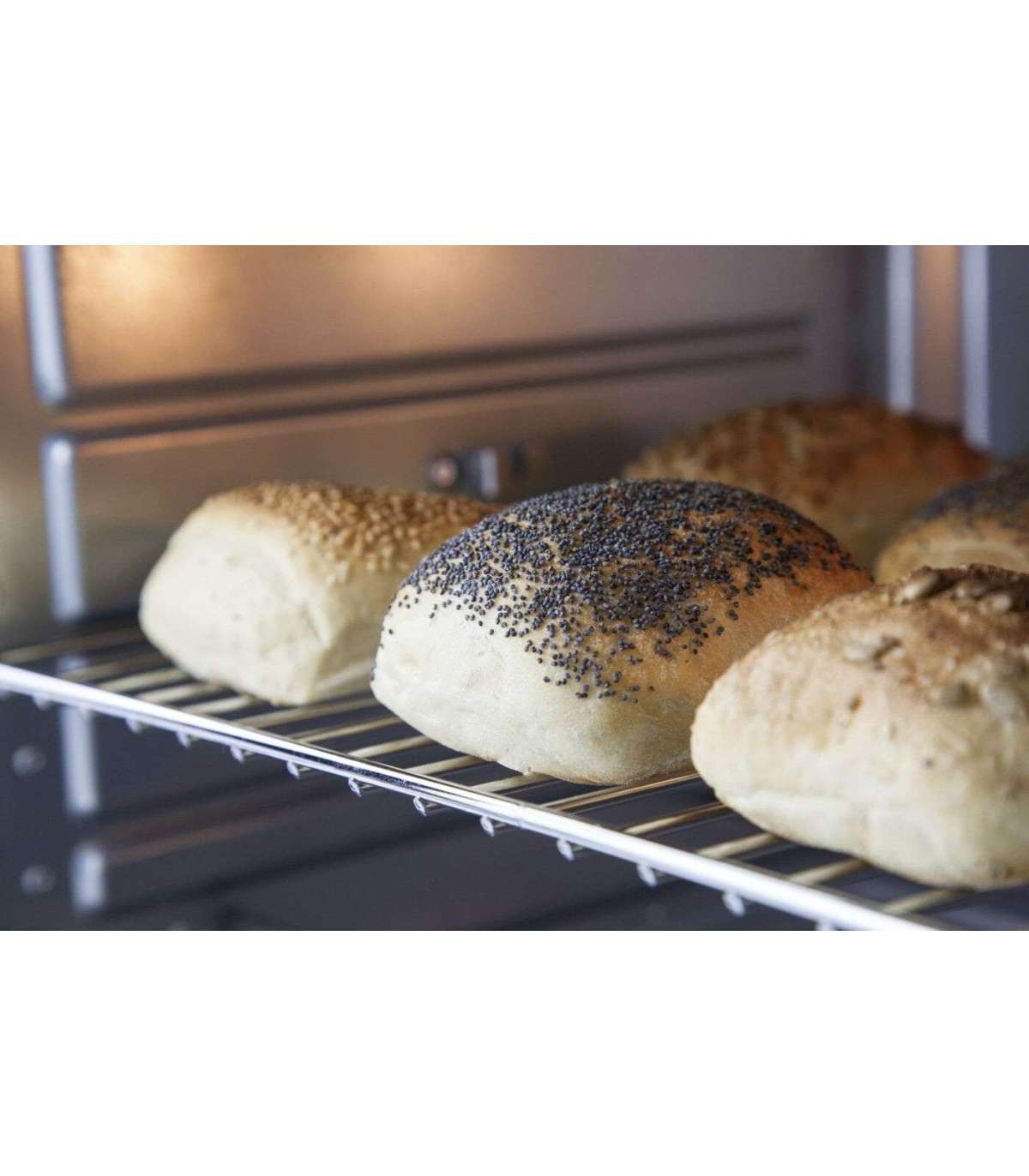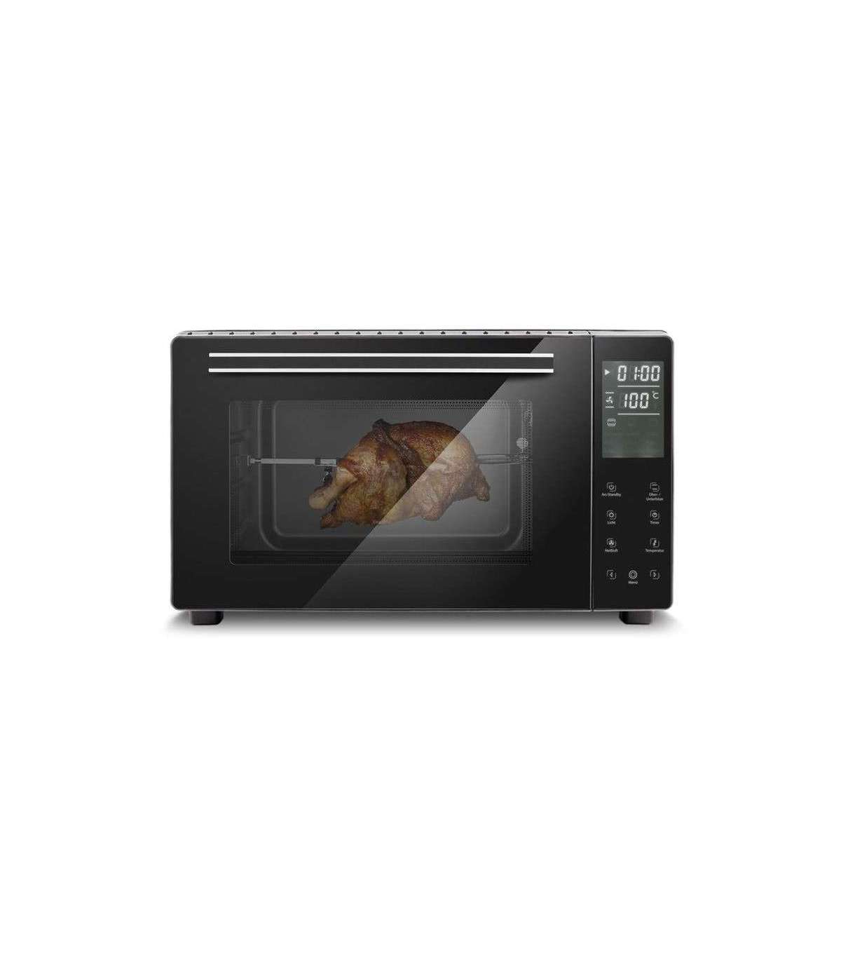 - 5 functions: Convection, rotisserie with motor, upper heat, lower heat, upper and lower heat