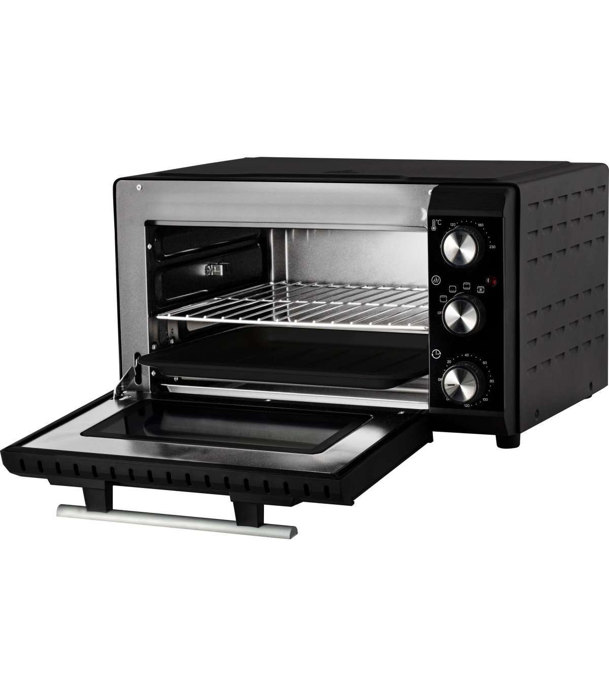 Supplied accessories: non-stick baking tray, chromed grill grate, chromed holder for removing tray/grate