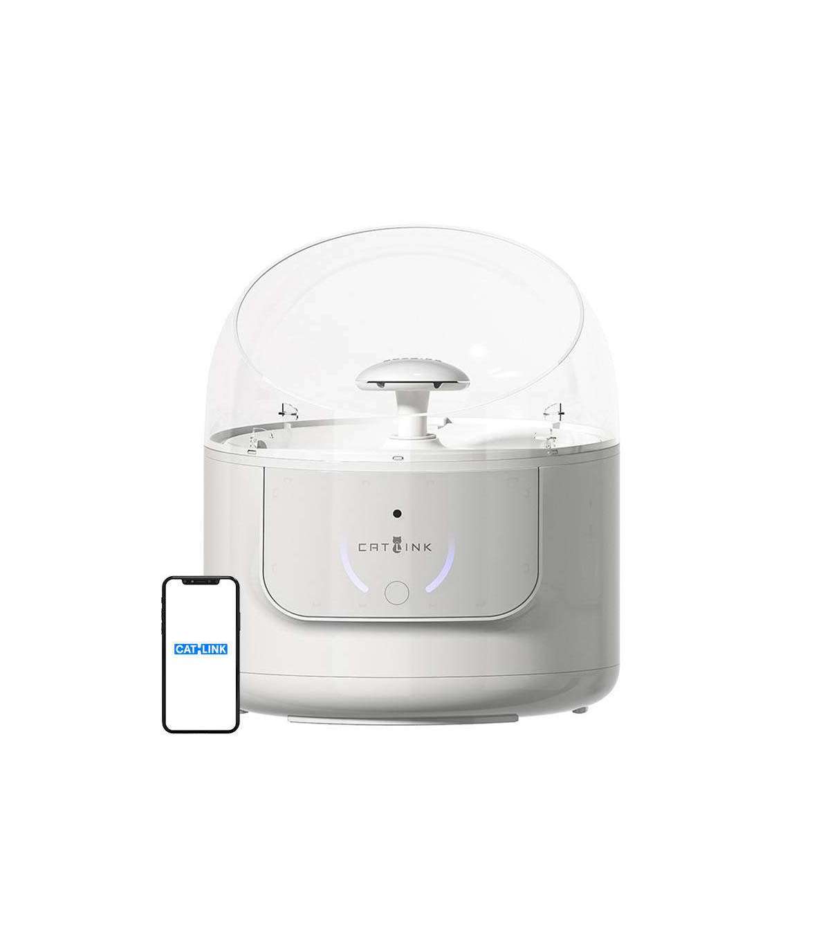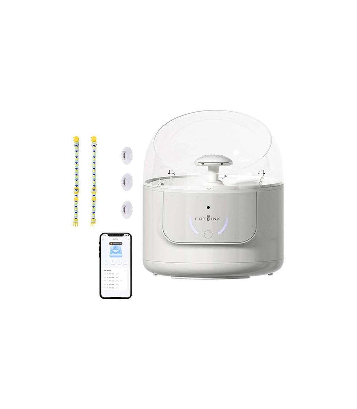 The ceramic bowl of the Catlink smart fountain is anti-bacterial and safe to use. What's more, the modular design makes it easy to clean. The unit is also resistant to water and corrosion, and the ABS plastic construction ensures optimal weight and provides stability. Meanwhile, the semi-circular cover makes it easy to keep clean and prevents water splashing. In addition, the device operates quietly (<35 dB), and the tank capacity is 2.3 liters, reducing the frequency of refilling to about 2 weeks (for 1 cat).