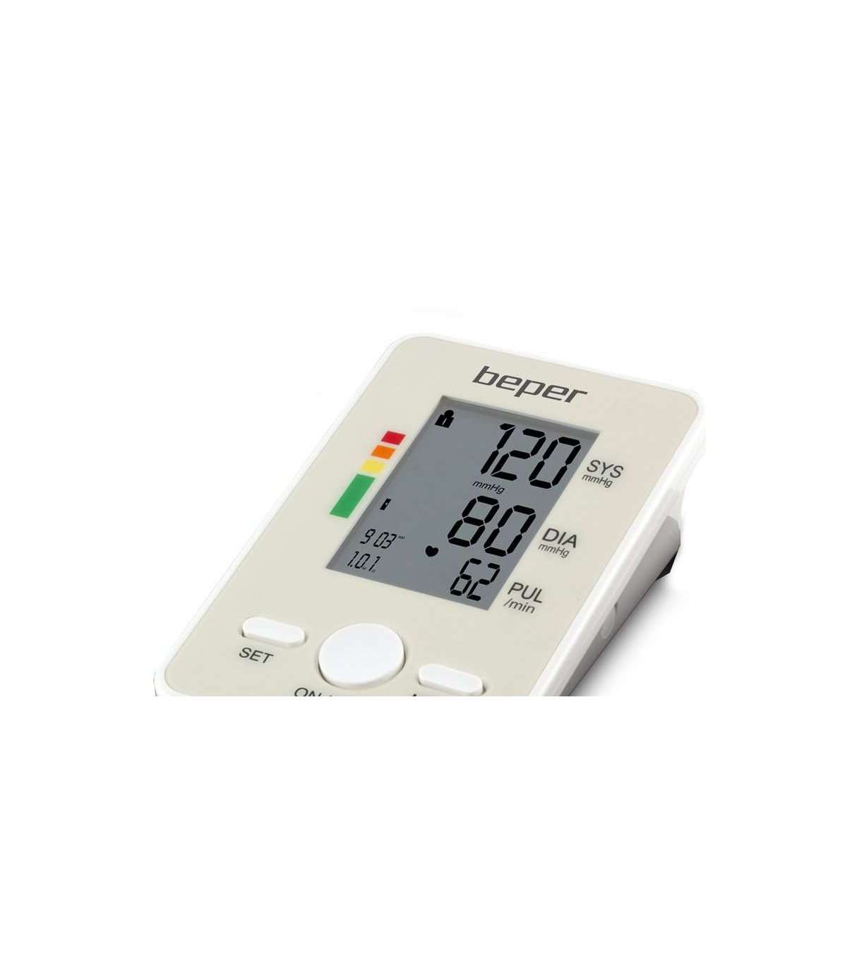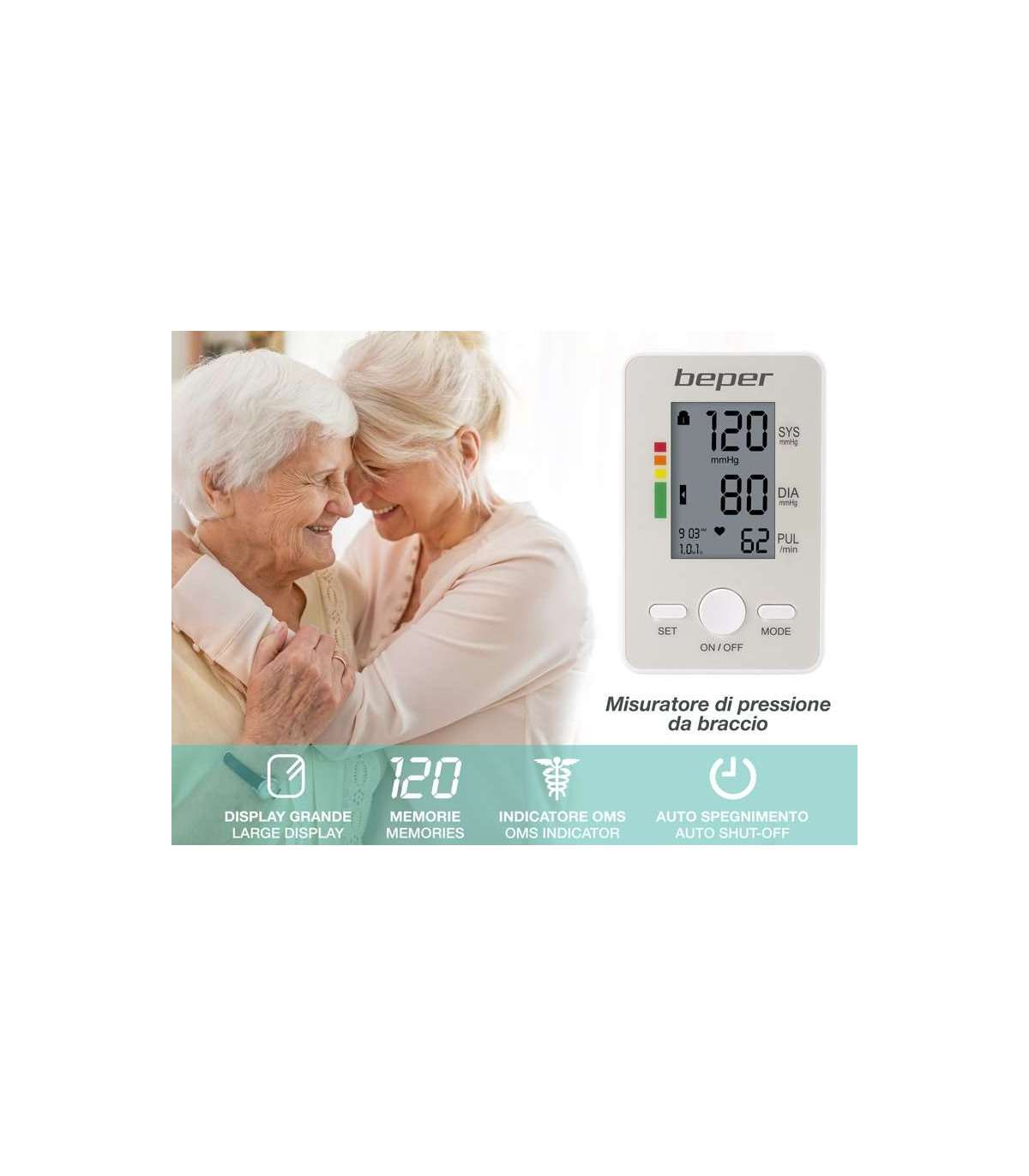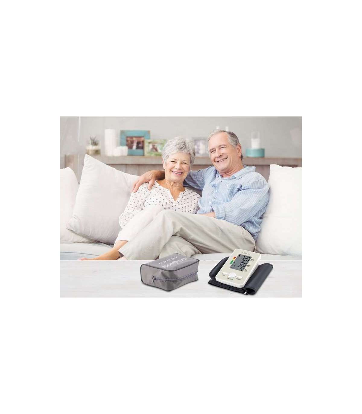 Õlavarre vererõhumõõtja koos süstoolse, diastoolse ja pulsatsiooniväärtuste samaaegse kuvamisega ning ekraanil nähtavate ebaregulaarsete südamelöökide näiduga. WHO (Maailma Terviseorganisatsiooni) mõõtmise näitaja. 120 mälestust kuupäeva ja kellaajaga. See lülitub automaatselt välja. Varustatud ümbrise ja vormitud käevõruga.