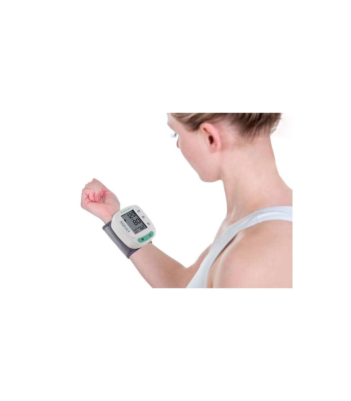 Randme vererõhumõõtja süstoolse, diastoolse ja pulsi samaaegse kuvamisega. Varustatud WHO (Maailma Terviseorganisatsiooni) mõõteindikaatoriga. 120 mälestust koos kuupäeva ja kellaajaga tagavad hõlpsa kasutamise aja jooksul. Toode lülitub automaatselt välja 4 minuti pärast. Varustatud kõva korpuse ja vormitud käevõruga.