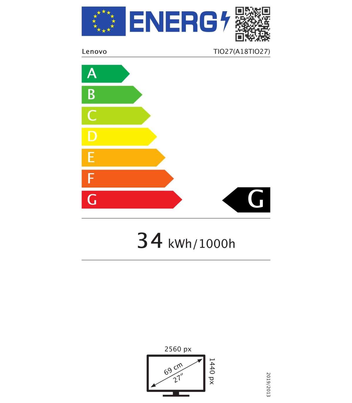 Lenovo Monitor ThinkCentre Tiny In One 27 " IPS QHD 16:9 60 Hz 14 ms 2560 x 1440 350 cd/m² HDMI