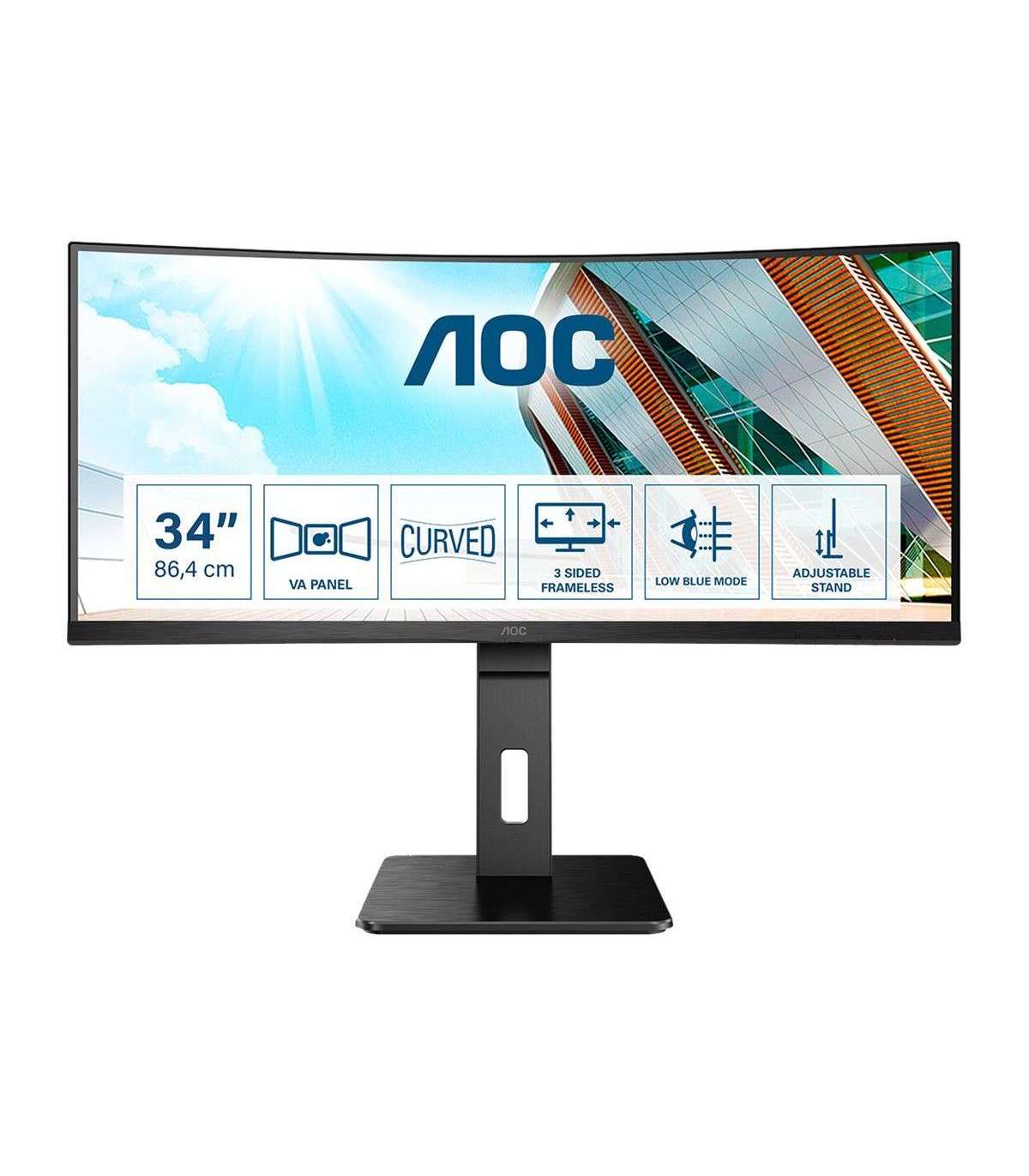 AOC | Curved Monitor | CU34P2A | 34 " | VA | 21:9 | 100 Hz | 1 ms | 3440 × 1440 | 300 cd/m² | Headphone out (3.5mm) | HDMI ports quantity HDMI x 2 | Black | Warranty 36 month(s)