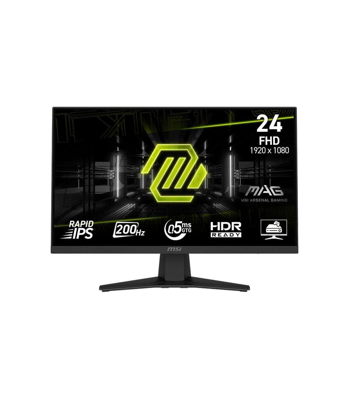 Experience immersive gaming with the MAG 244F gaming monitor. It features a 1920x1080 (FHD) panel, a 200Hz refresh rate, and a rapid 0.5ms (GtG, Min) response time. The monitor is HDR Ready, enhancing eye-catching details through adjustments in contrast and shadows. Designed for competitive FPS, first-person RPG/MMORPG, and flight/racing simulator genres, the MSI MAG 244F Gaming Monitor takes casual gaming to a new level, challenging players to see beyond the game.