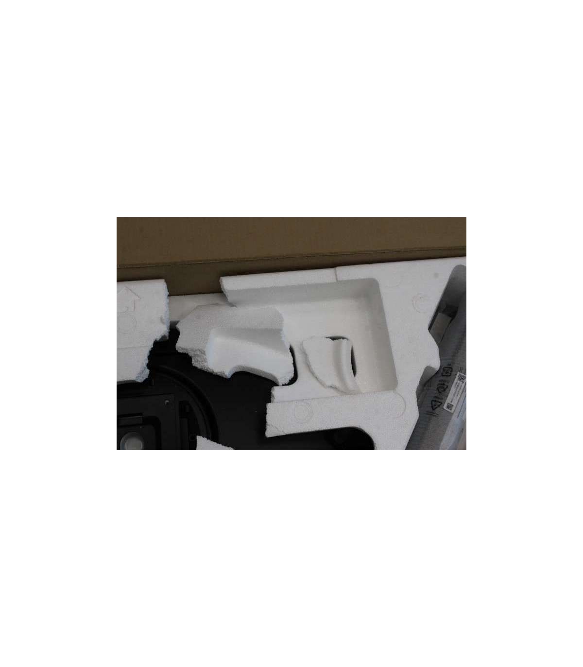 USED, DAMAGED PACKAGING FOAMS, PART ON BROKEN SCREW LEFT IN VESA MOUNTING HOLE