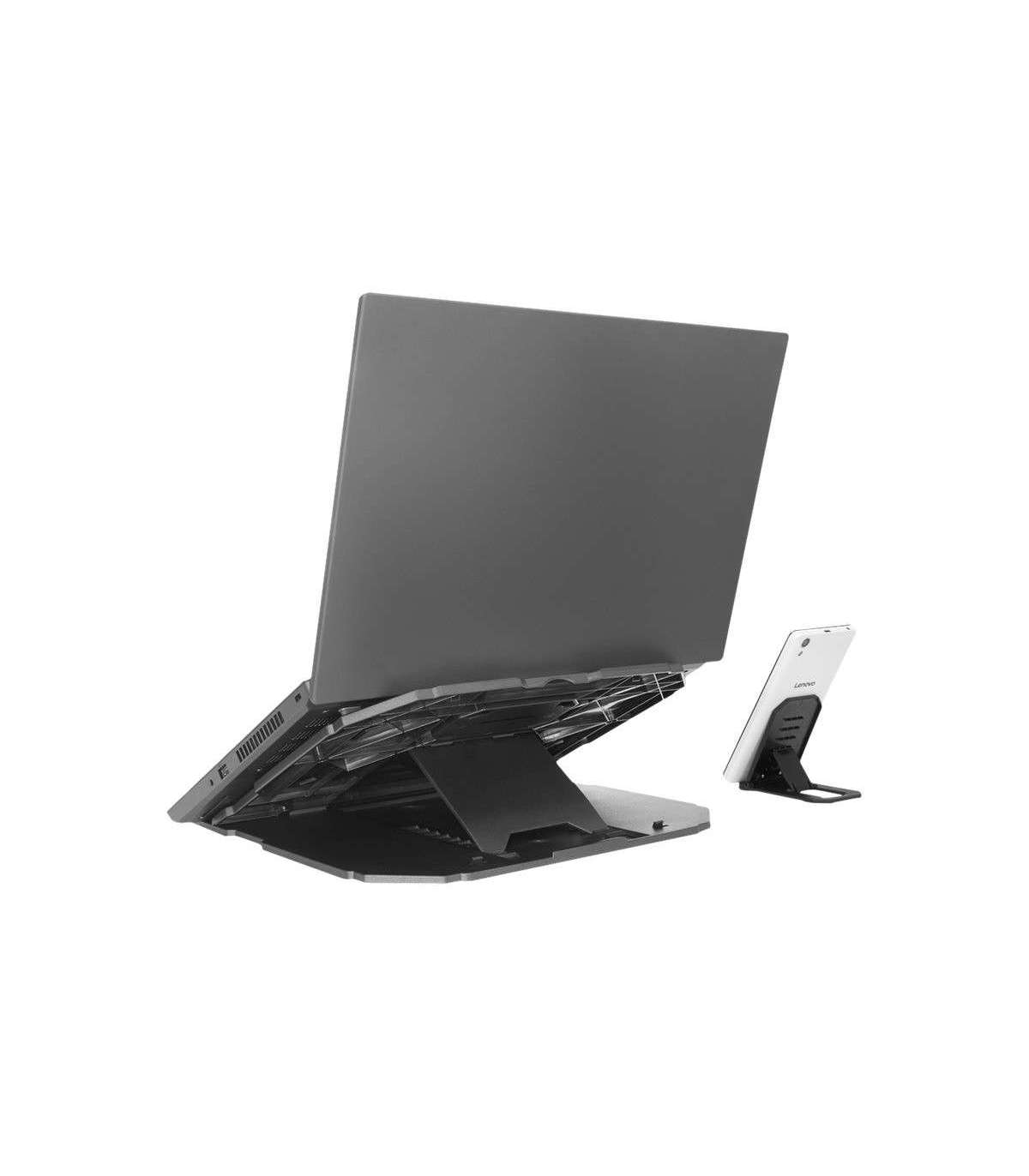 - Ergonomic design with 10 levels of adjustment from 0 to 54 degrees; Additional cellphone stand for multitasking; Durable, lightweight construction with non-slip rubber surface pads for steady typing; Supported Laptop Weight - 5 kg