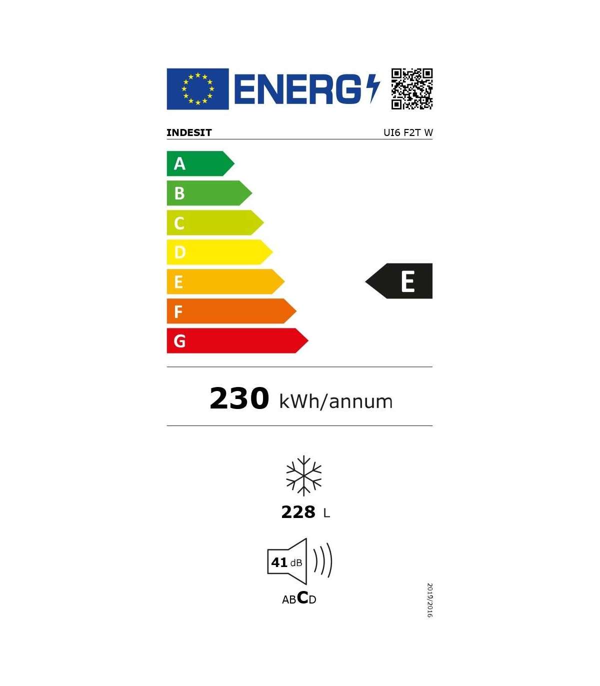 Indesit UI6 F2T W Freezer, E, Free standing, Height 1.67 m, Freezer net 228 L, White INDESIT Energy efficiency class