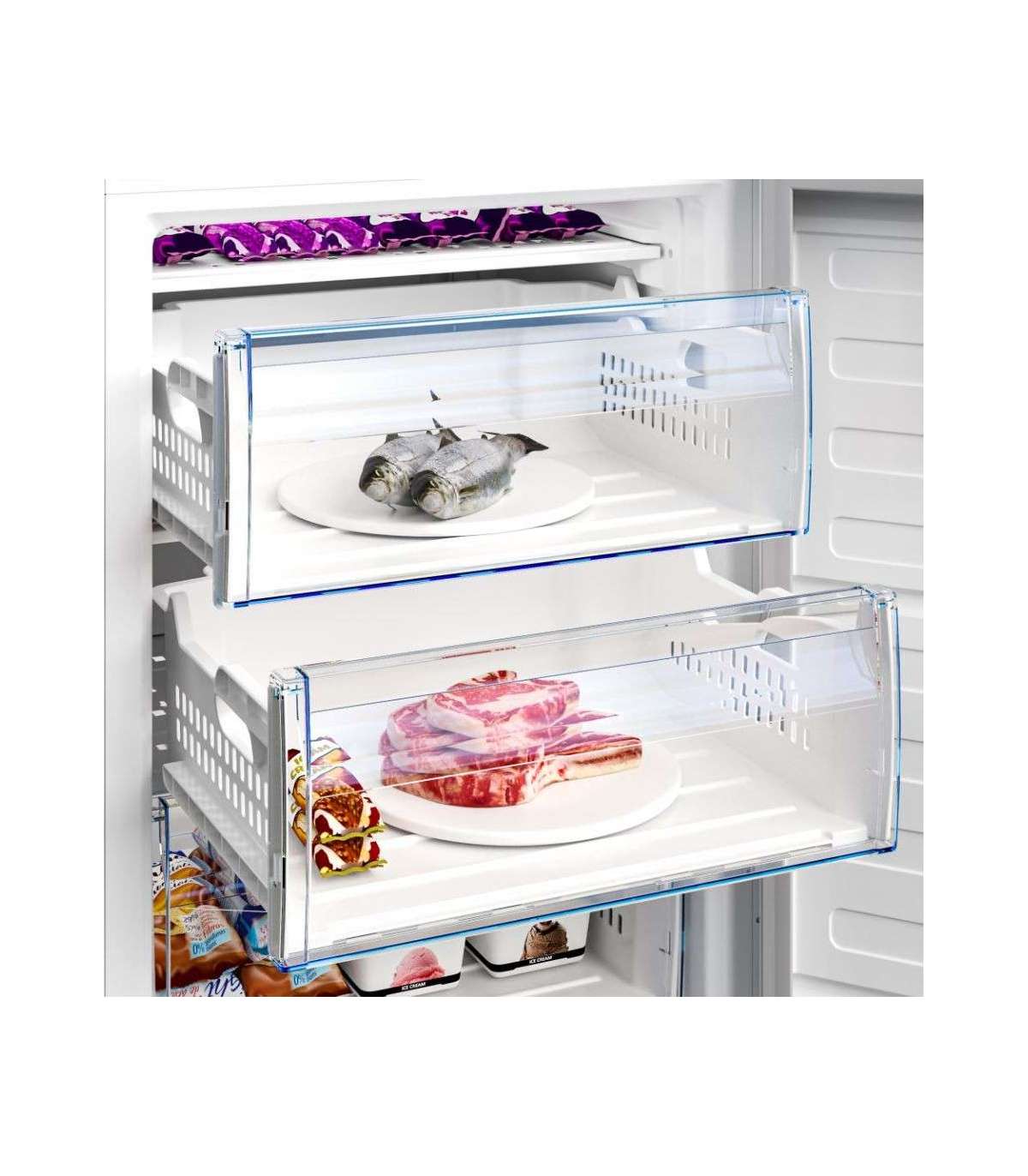 When the Fast Freeze function is activated, the internal temperature of the freezer compartment drops immediately. When the mode ends, the refrigerator automatically restores the previously set temperature.
