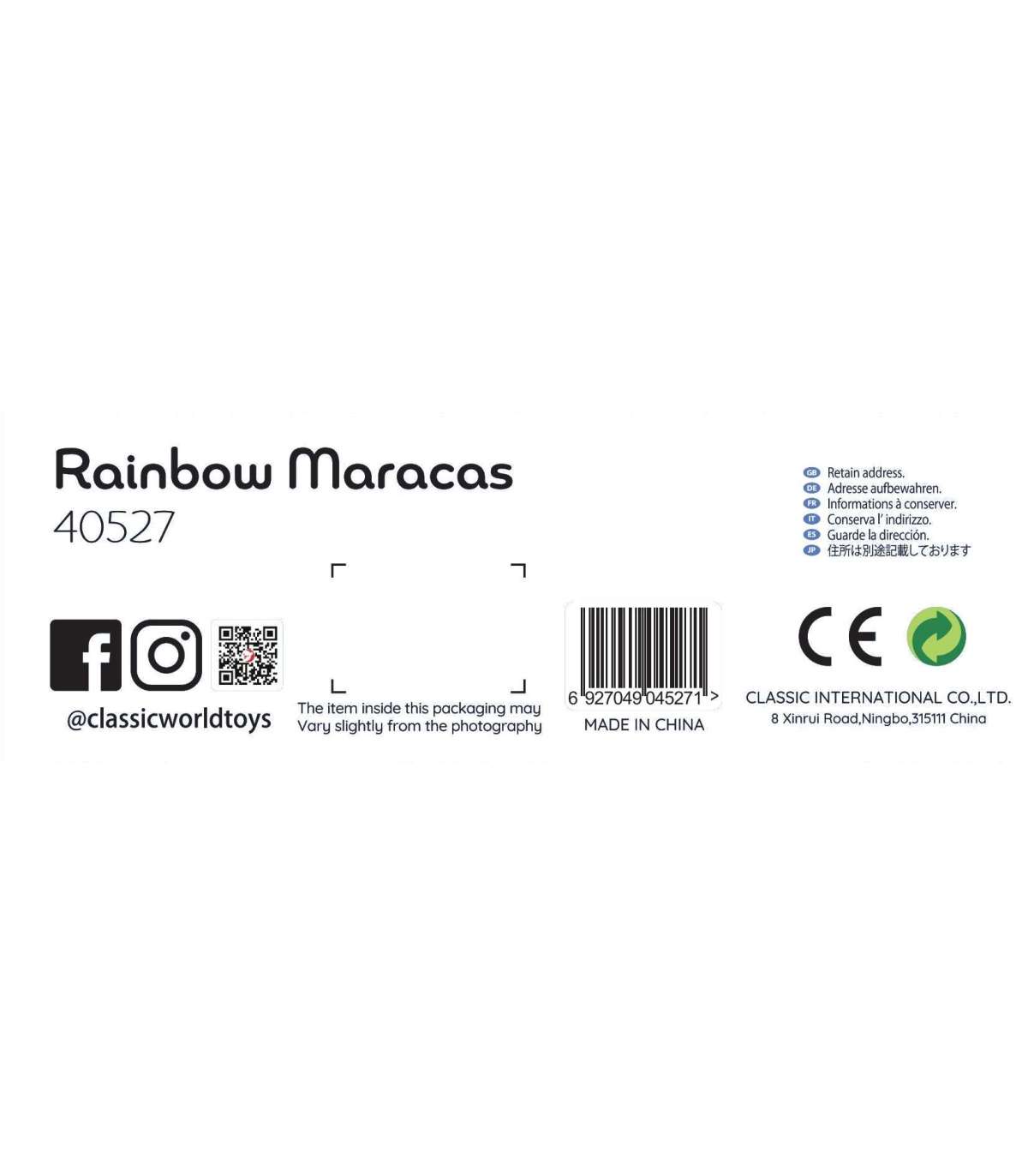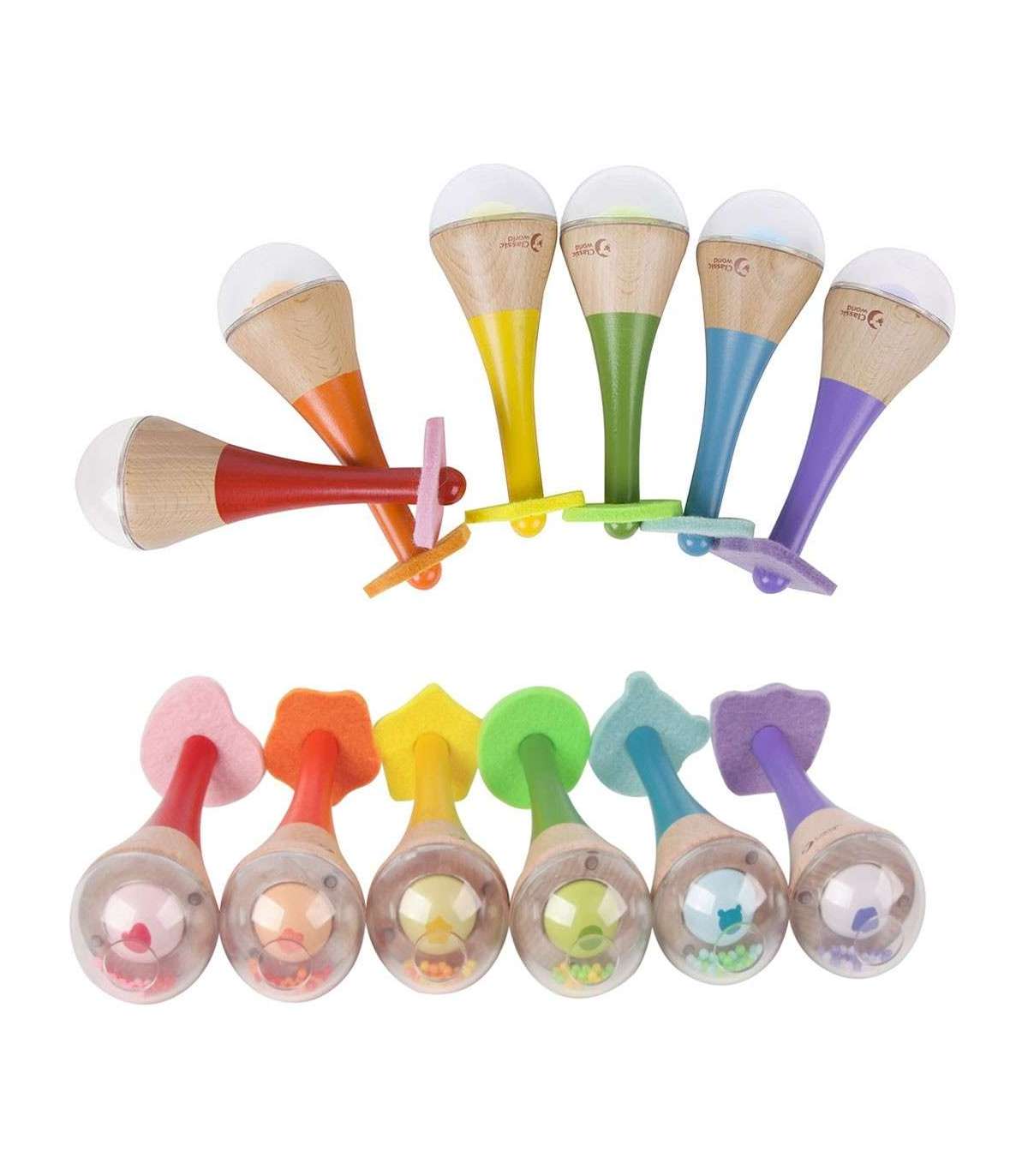 CLASSIC WORLD Grzechotka 2w1 Drewniany Instrument Tęczowy Marakas 1 szt.