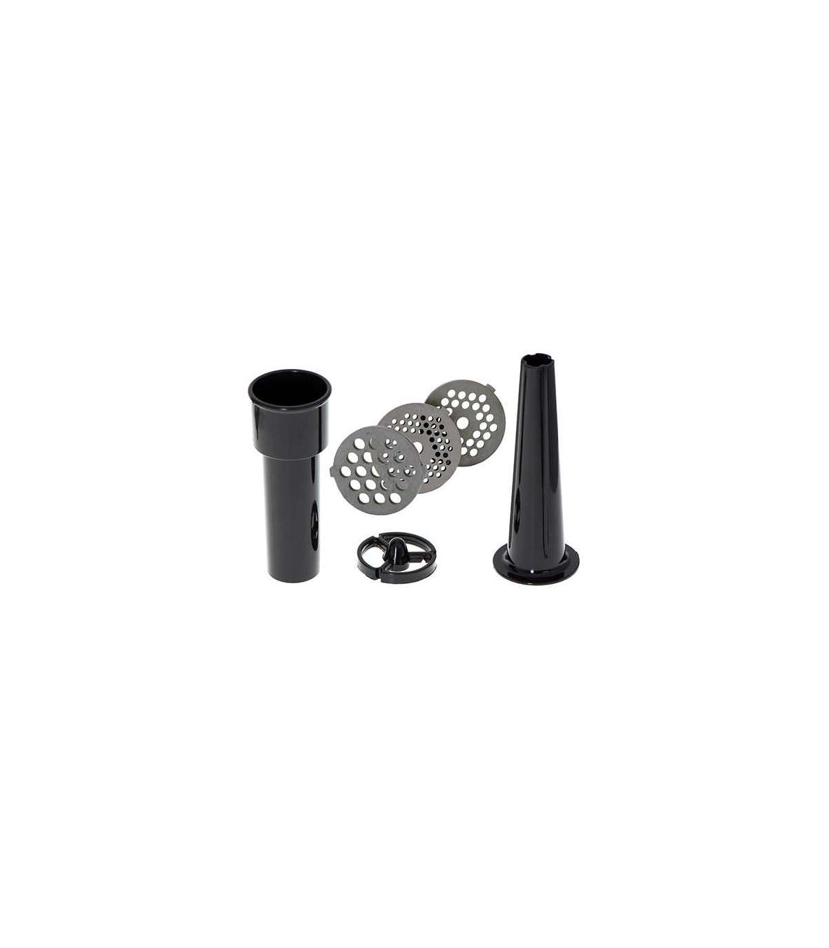 - 3 replaceable sieves: 3mm for grinding poppies and preparing meat and vegetable stuffing; 5mm for meatballs, Roman roast and beef burgers; 7mm for coarsely ground sausages, offal sausages and pates; Charging tray; Pusher
