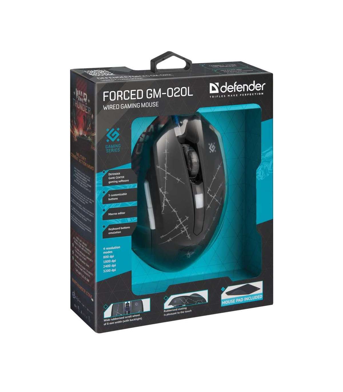 Defender Forced GM-020L mouse Gaming Ambidextrous USB Type-A Optical 3200 DPI