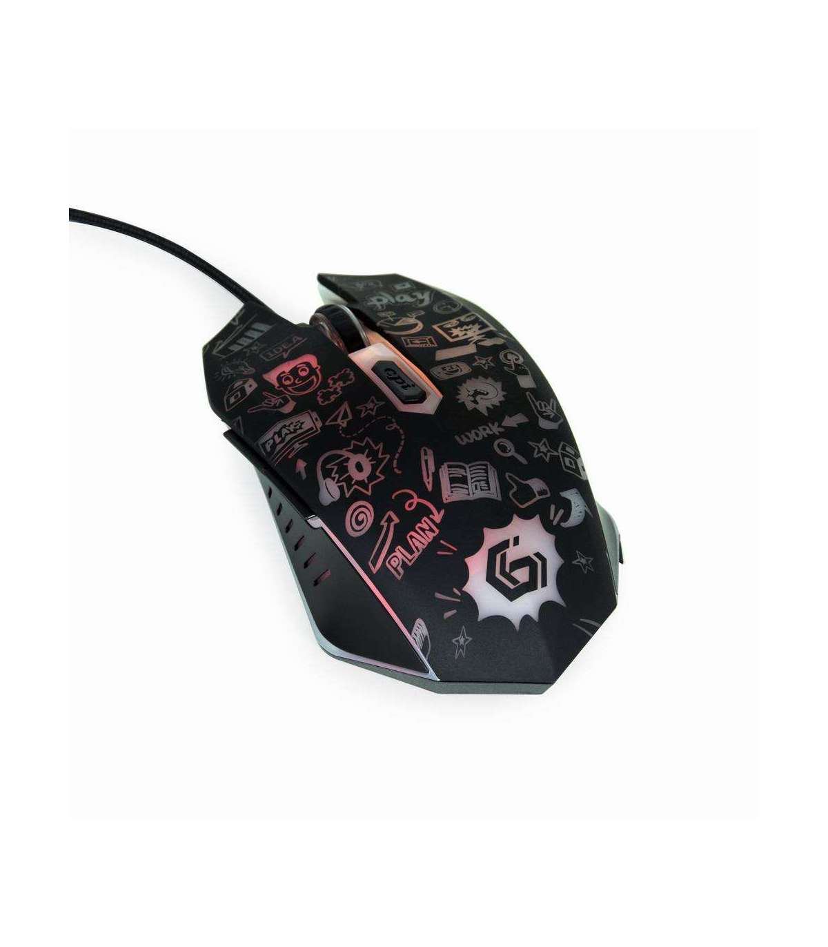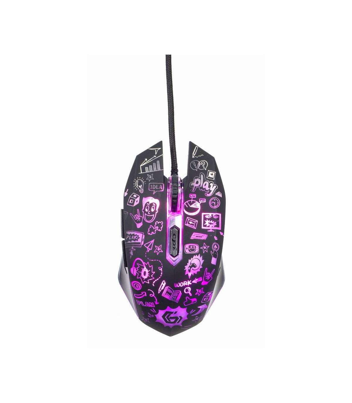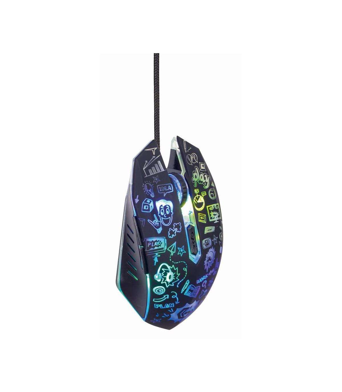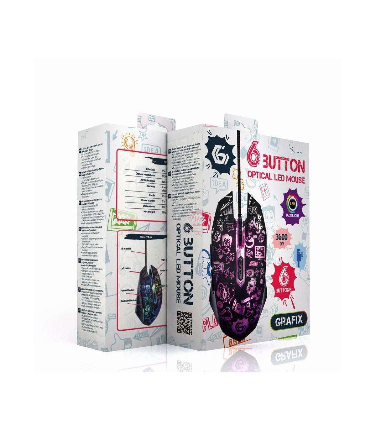 6-button wired optical mouse with cartoon style graphic design