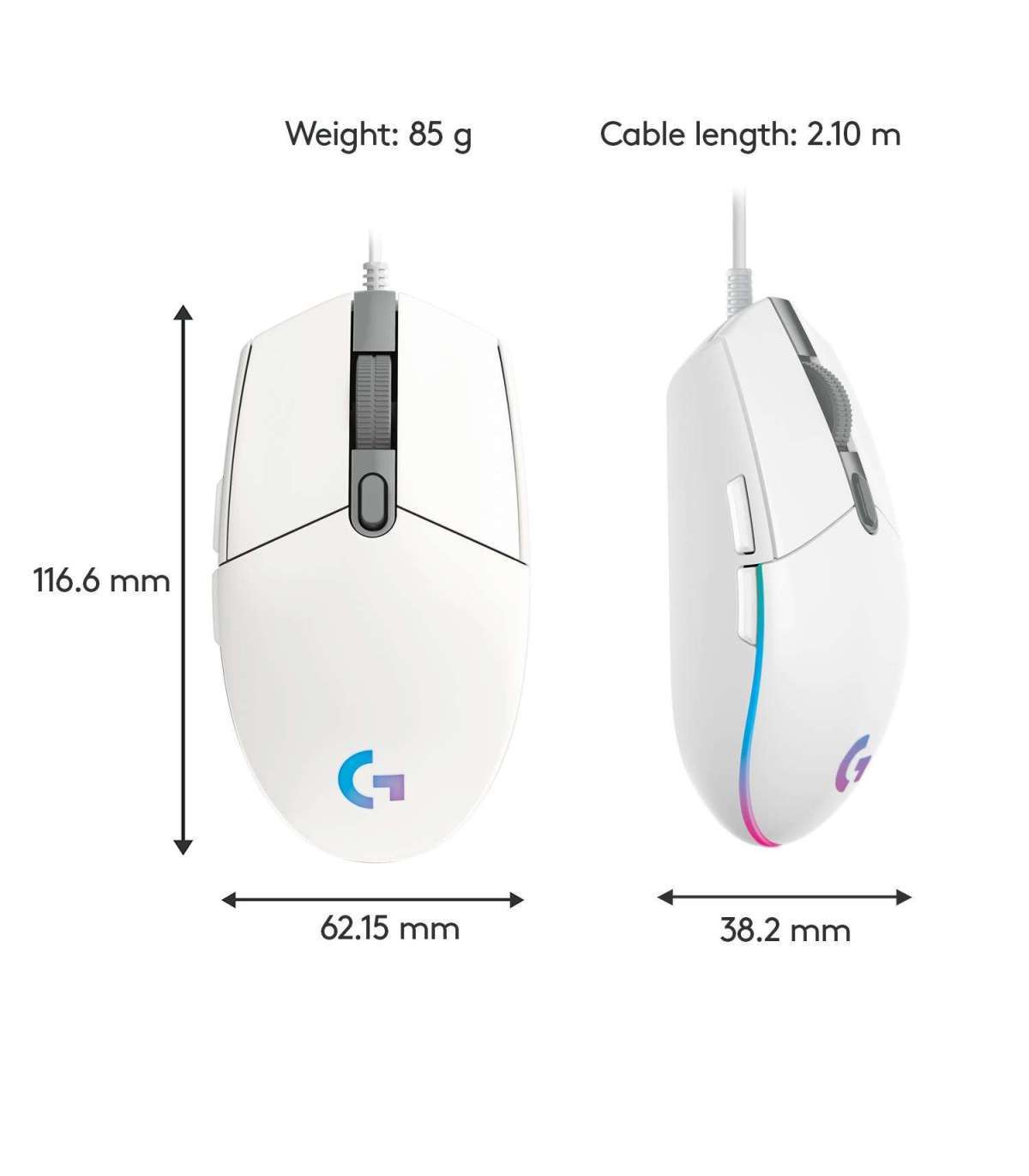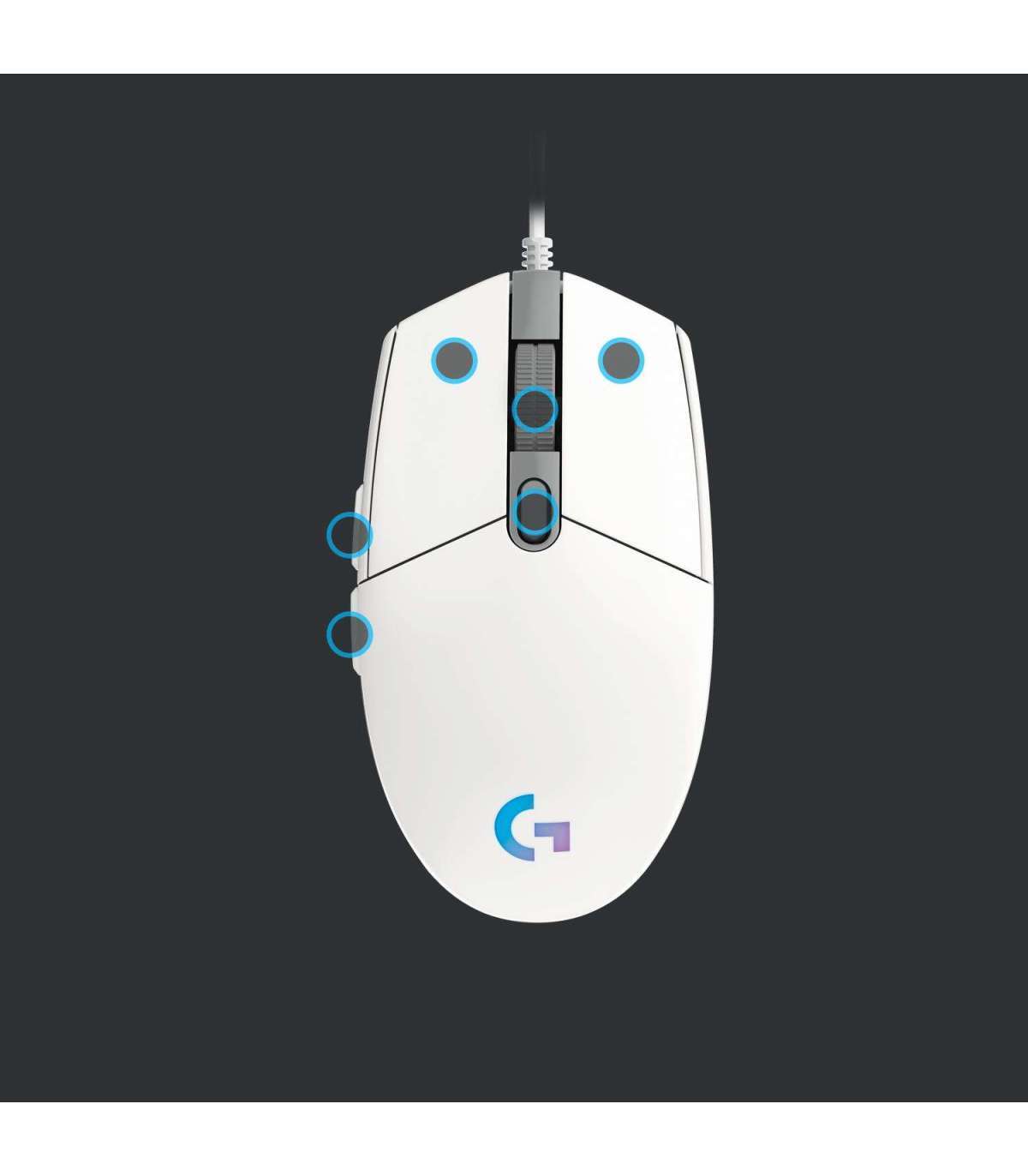 MOUSE USB OPTICAL G203/WHITE 910-005797 LOGITECH