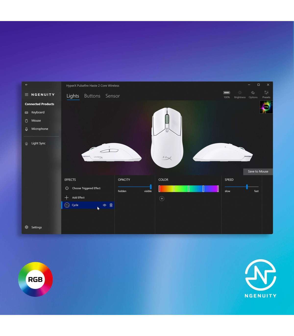 - Personalize lighting, set up macros and or key binds, and customize DPI settings with easy-to-use HyperX NGENUITY Software5 and get the most out of the Pulsefire Haste 2 Core Wireless.