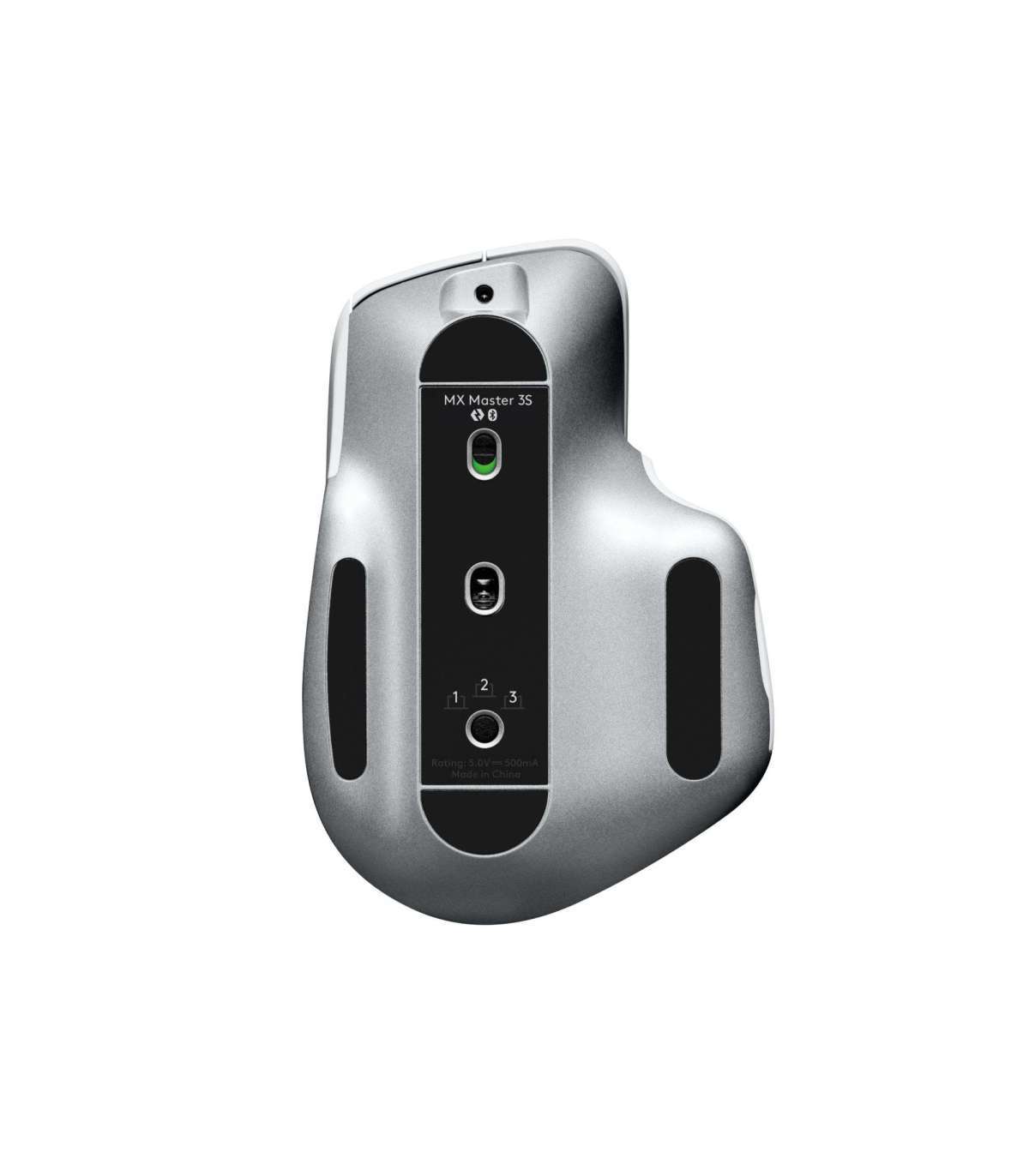 (1) 4 mm minimum glass thickness (2) Compared to MX Master 3, MX Master 3S has 90% less Sound Power Level left and right click, measured at 1m (3) Compared to regular Logitech mouse without an electromagnetic scroll wheel (4) Compared to Logitech Master 2S mouse with Logitech Options installed and Smooth scrolling enabled (5) Requires Logi Options+ software, available for Windows and macOS (6) Not compatible with Logitech Unifying technology (7) Battery life may vary based on user and computing conditions. (8) Device basic functions will be supported without software for operating systems other than Windows and macOS (9) Wireless range may vary depending on operating environment and computer setup (10) Excludes plastic in printed wiring assembly (PWA), receiver, wire, FFC cable, and packaging.