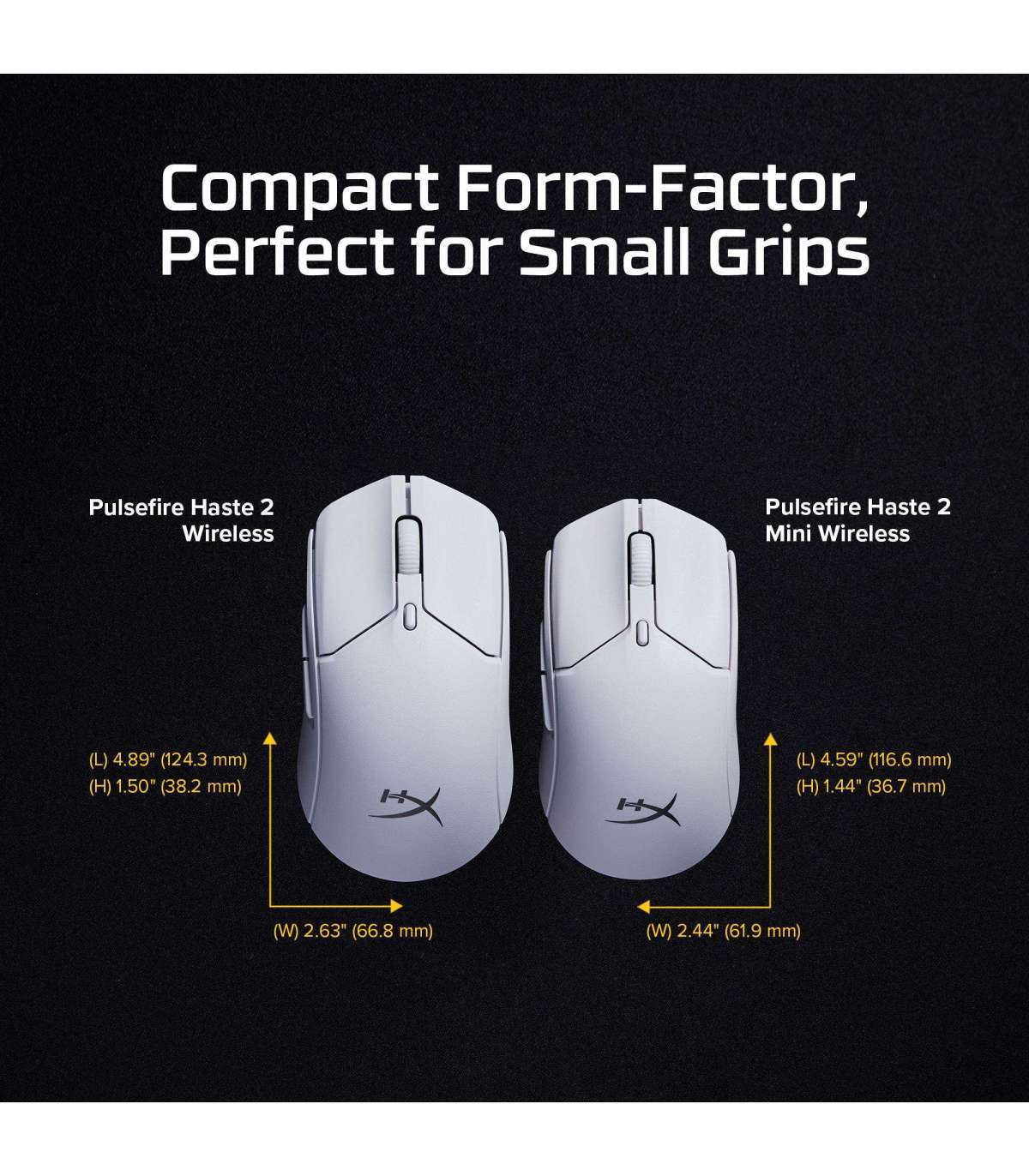 - All the goodness of the Pulsefire Haste 2 Wireless, 1/6th less space! Featuring the same HyperX high-performance custom components, built for gamers with smaller hands, or who prefer smaller mice.