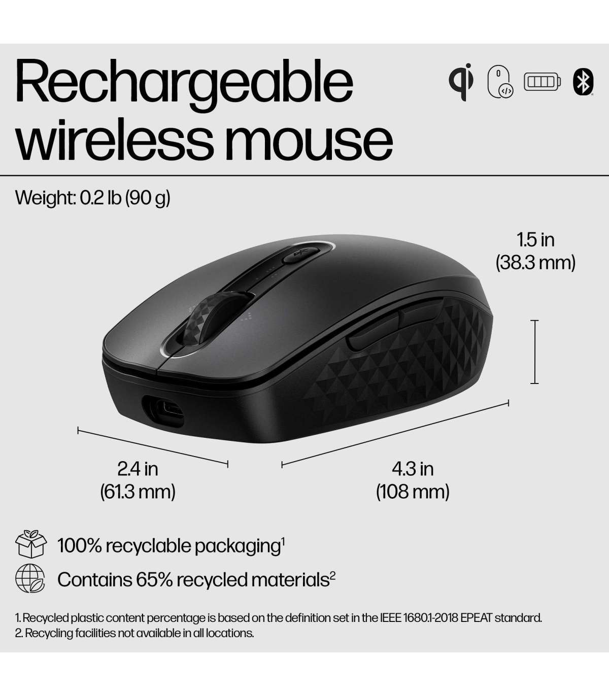 HP 695 Wireless Bluetooth Mouse - Wireless Qi-Charging, Programmable, 4-way Scrolling - Black