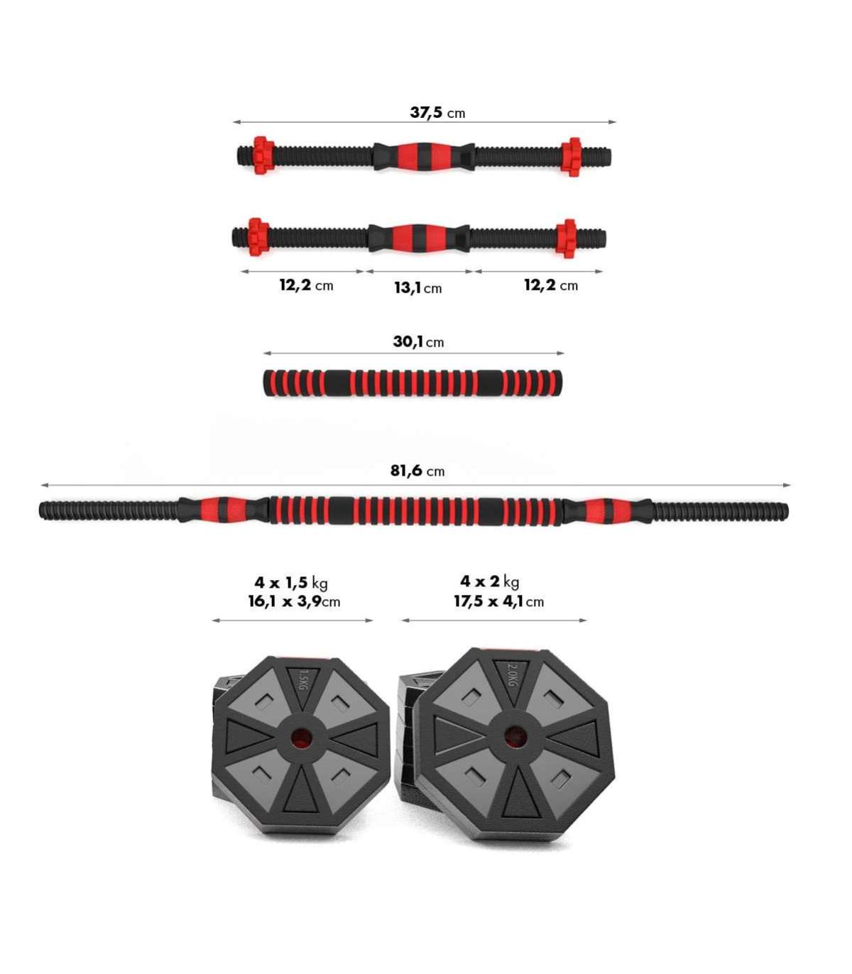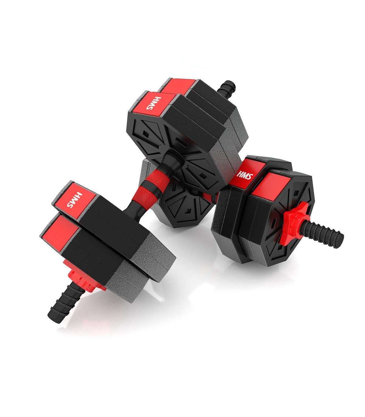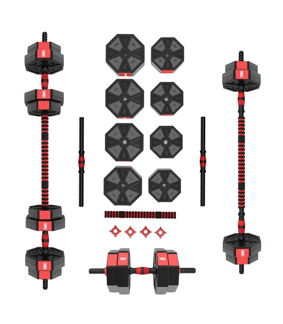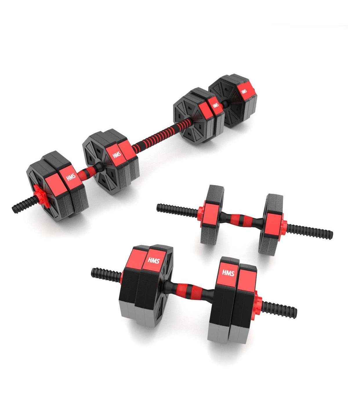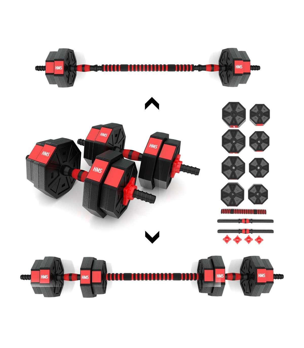 A dumbbell with replaceable weights is a classics and, at the same time, a must have for every home gym. SGC15 HMS is a set of two composite dumbbells. However, they can be joined together to form a barbell.High quality material guarantees high strength and consequently, it ensures long-term life of the equipment. Collars and perfectly fitting diameter of the weight hole make it easier to replace the load quickly and to ensure robust position on the bar. Since the collars are threaded the weighs do not shift in any way during a workout.Due to a special extension it is possible to combine two short bars into a long one. This innovative solution significantly extends the range of workouts. A user can have a barbell to do exercises that are not possible or not comfortable when using dumbbells. Having one product, we can use two.The set comprises two bars, four collars, bars connection system and total no. of 8 weights.The product is suitable for both, advanced users and beginners. Start your training today, the SGP15 HMS is an ideal choice for a home gym.Specification:Material: PVC + cement, iron, foamDimensions of the bar:Length: 37.5 cmDiameter: 24 mmDiameter of the grip part 31 mmDimensions of the coupling system:Length: 30.1 cmDiameter: 44 mmWeights:2 kg – 17,5 x 4,1 cm1,5 kg – 16,1 x 3,9 cmWeight of the bar: 295 gWeight of the coupling system: 337 gWeight of the collar: 18 gTotal weight of the set: 16 kgThe set includes:Short bar x 2Bars coupling system x 1Weights 2 kg x 4Weights 1,5 kg x 4Collars x 4Remarks:Not intended for commercial use24 months warrantyImporter: Abisal Ltd. | Poland | 41-807 Zabrze | Pyskowicka Street 17 | e-mail: abisal@abisal.plAbisal Ltd.. declares that the products sold by the company are safe and meet the requirements contained in the Act on General Product Safety of December 12, 2003. (Journal of Laws of December 31, 2003)